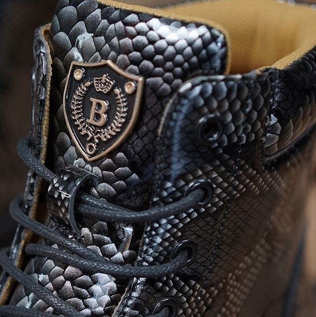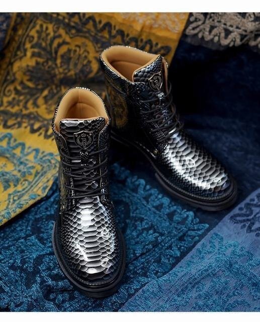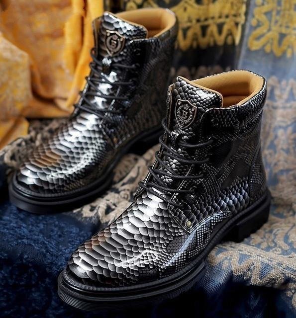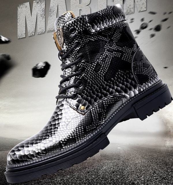 ブーツ メンズブーツ シューズ マウンテンブーツ レザー 蛇柄 レースアップ エナメル バイクブーツ 滑り止め ブラック 27cm