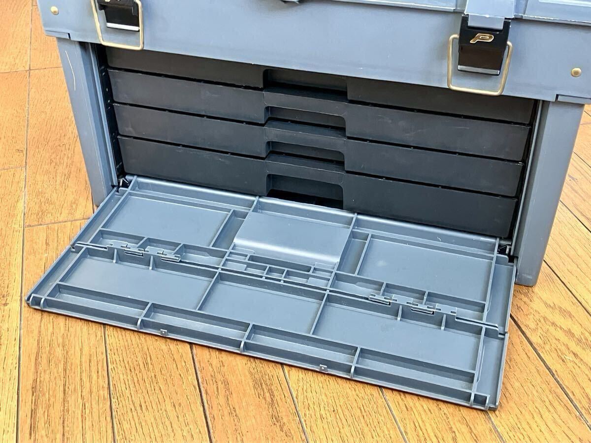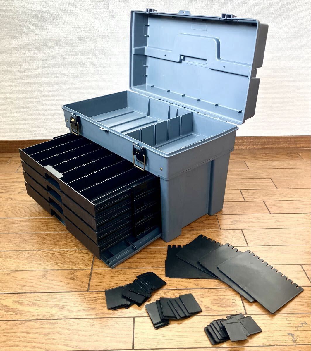 正面カバーを開けば4段式の引き出しに分かれており、ルアーや小物類を大量に収納できます。