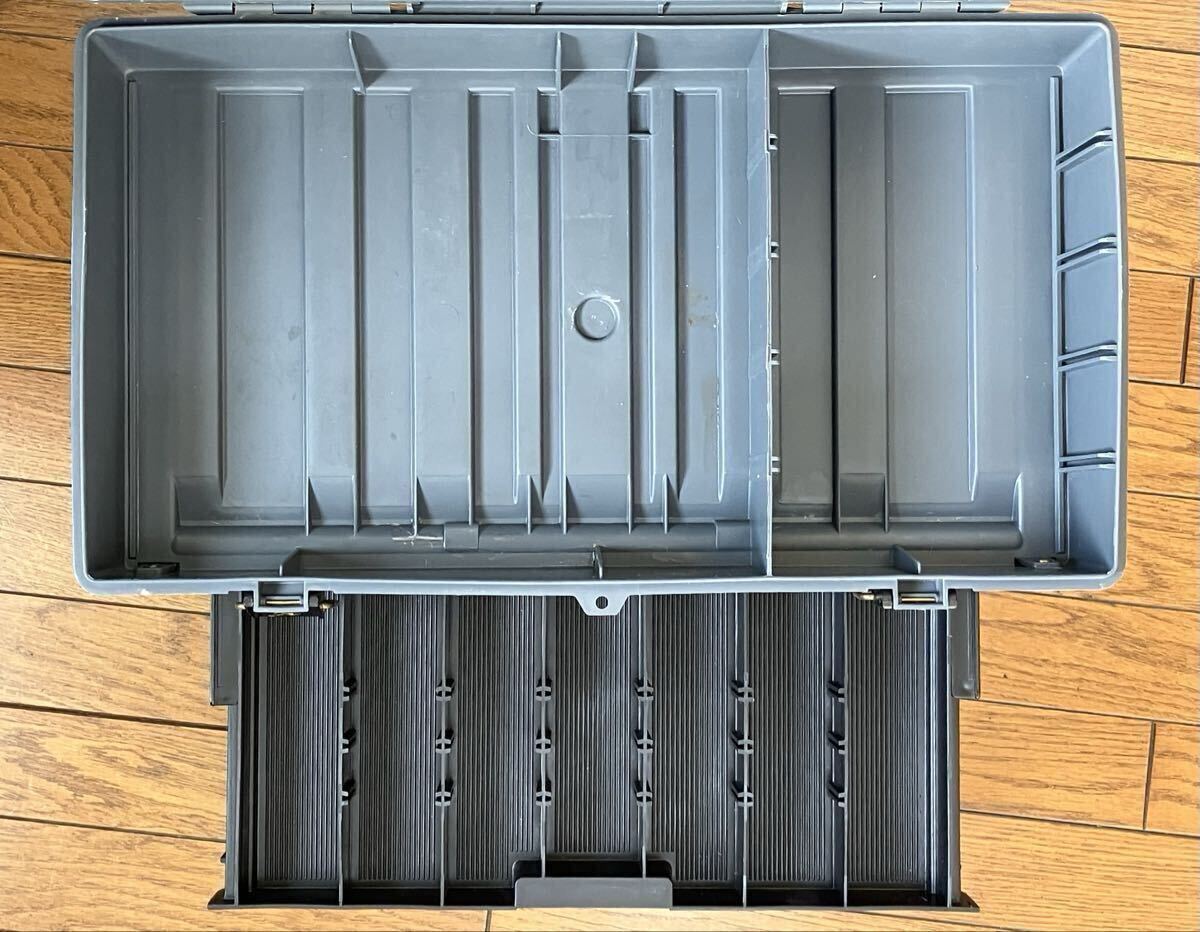 上蓋を開ければ大きなスペースがあり、リールやケース類が収納できます。