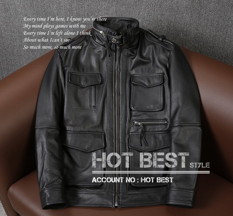 カウハイド 復刻50'スタイル サファリジャケット ミリタリー M65タイプ イタリアンレザー クロム鞣し 牛革 Y1958/S~5XLサイズ指定可