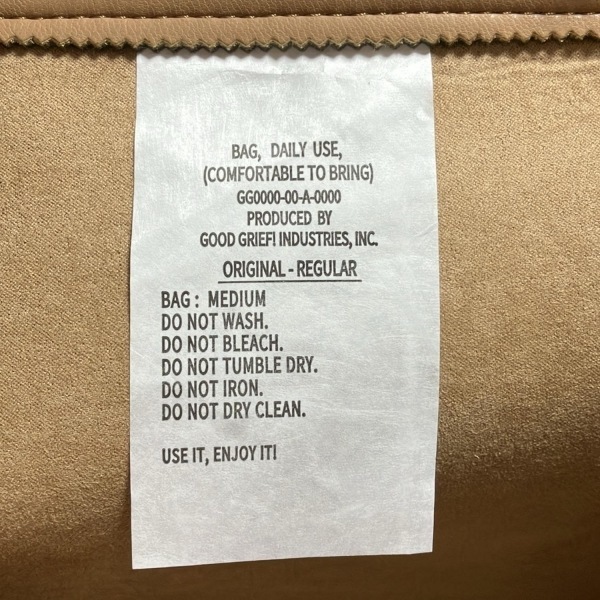 グッドグリーフ GOOD GRIEF トートバッグ - ライトブラウン バッグ