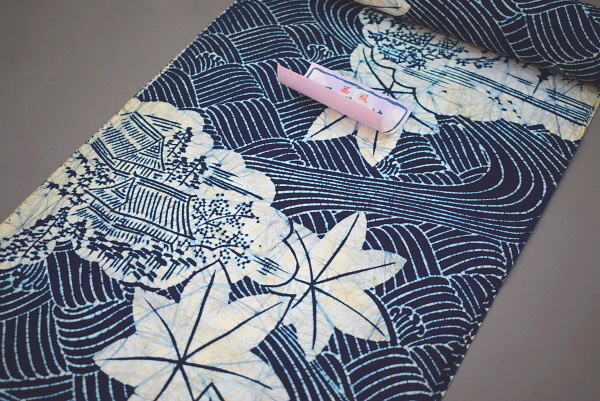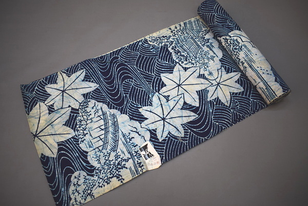 A13-1【凛々】即決 新古品 本染 ゆかた反物 紺 雲 紅葉 未仕立て品
