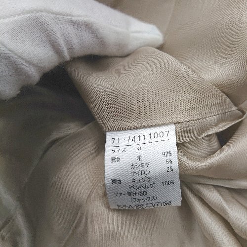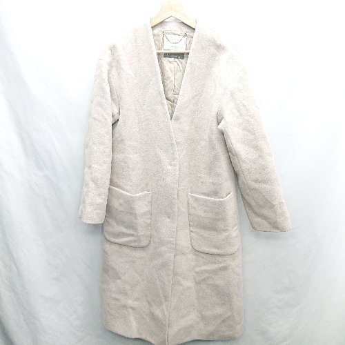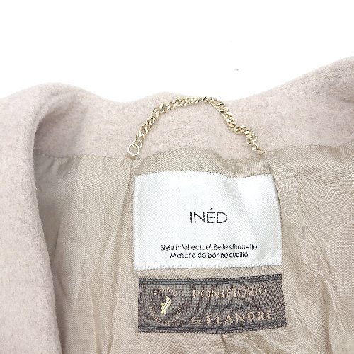 ◇ ⊇ INED イネド ウール カシミヤ混合 長袖 ノーカラーロングコート サイズ9 ベージュ レディース E