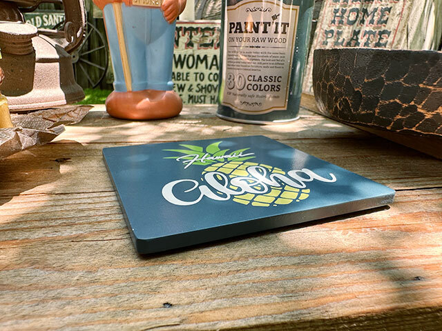 レトロ調のパイナップルが描かれたハワイアンコースターです。