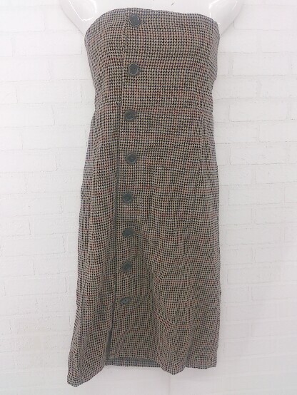 ◇ Discoat ハイウエスト 千鳥格子 ロング タイト スカート サイズM ブラウン マルチ レディース P