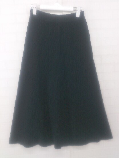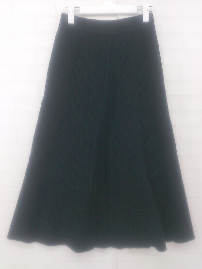 ◇ UNE MANSION ユヌマンション ウエストゴム リブニット 膝下丈 フレア ニット スカート サイズ F ブラック レディース E