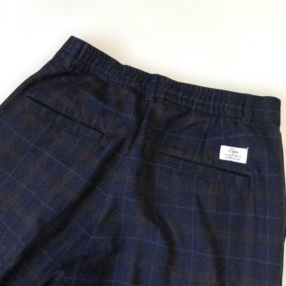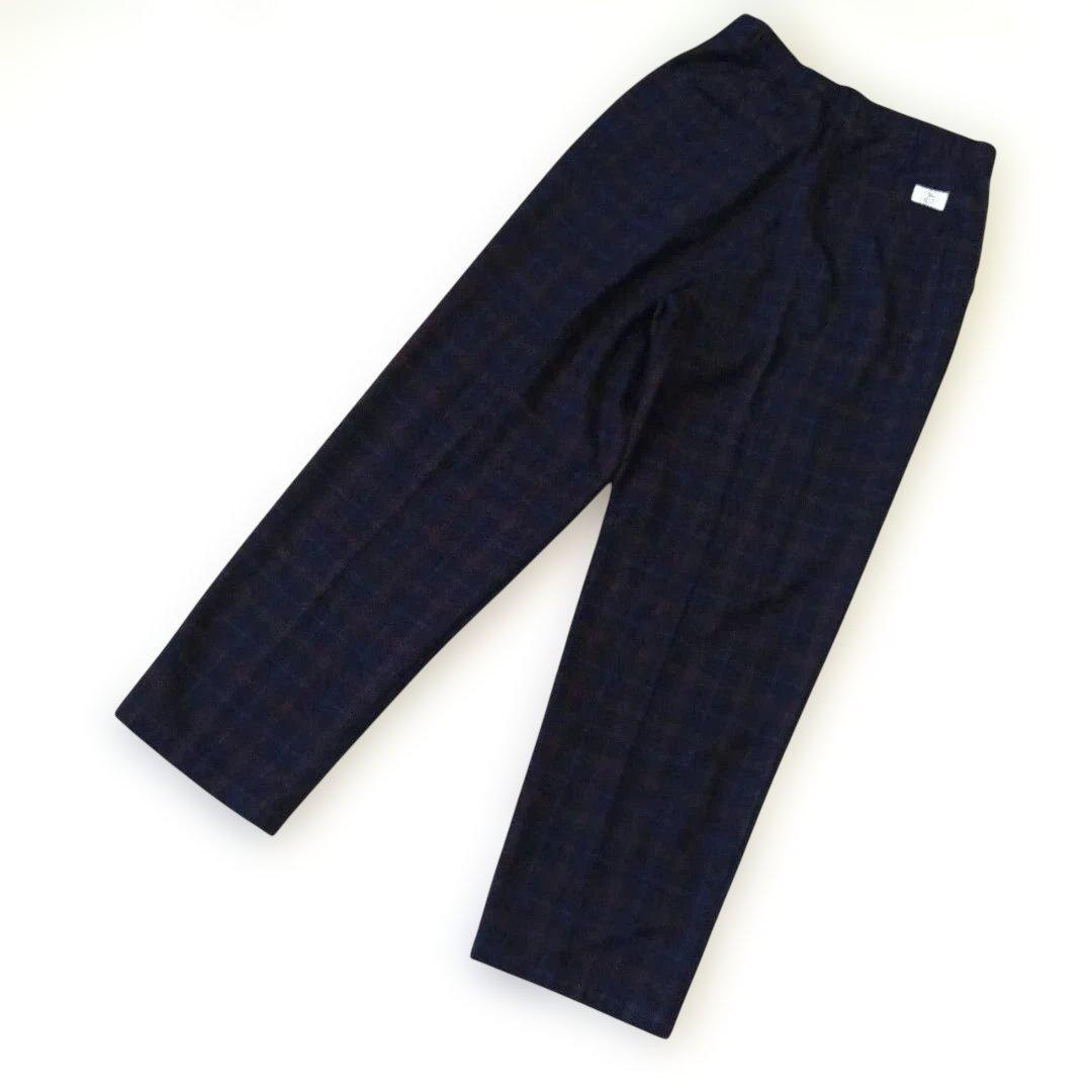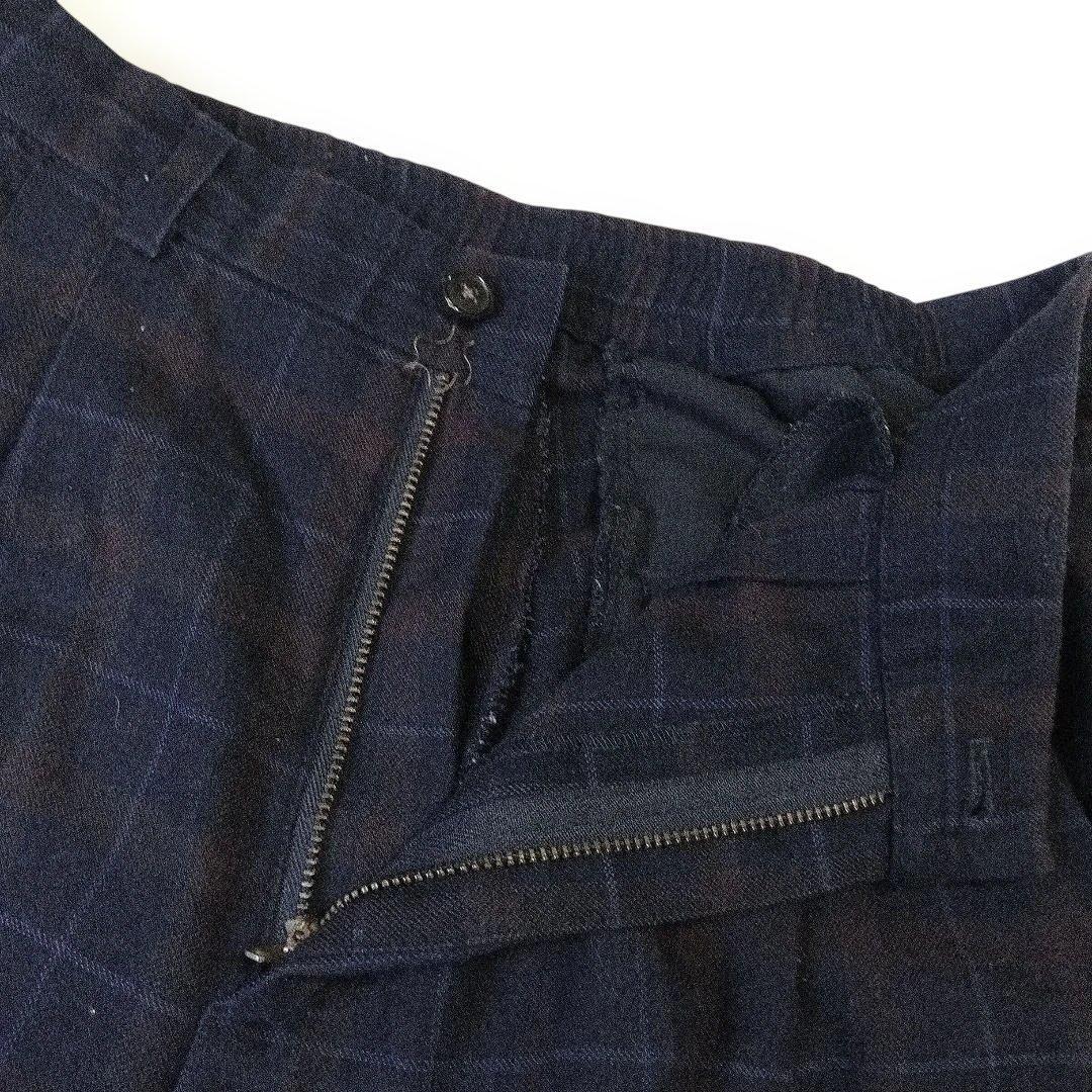 セポ ワイド系スラックスM ネイビー チェック柄 ウエストゴム 中国製 920A4A