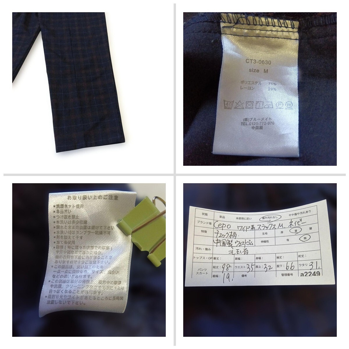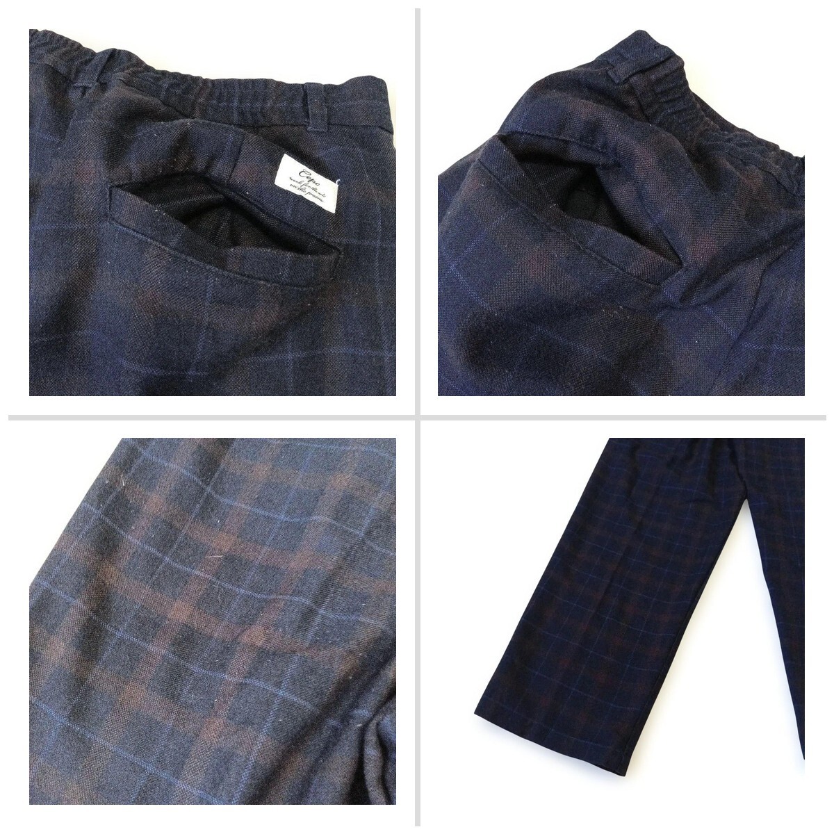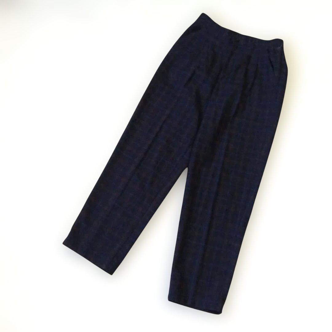 セポ ワイド系スラックスM ネイビー チェック柄 ウエストゴム 中国製 920A4A