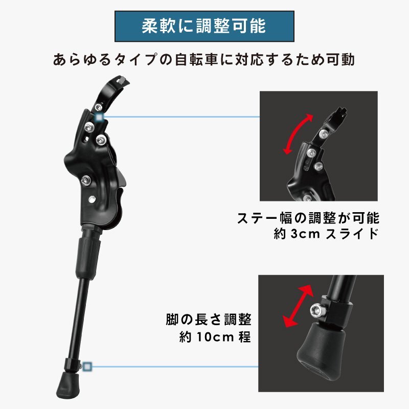 一度取り付ければ取り外し不用 足先だけで簡単に操作ができる安定型キックスタンドです。 ・ロードバイク、マウンテンバイク、クロスバイクに対応。 ・29インチの自転車に対応。 ・ステー同士の間隔はスライド調整できます。 シートステー側へ約3cm延長移動。 ・チェーンステーとシートステーの二箇所固定で 安定感があり、固定箇所への負担も軽減します。 ・キックしやすい高マンガン鋼のバネ素材 使用時・収納時でしっかりと止まり固定します。 サイズ:長さ38-49 cm (調整パーツ長さ21-32 cm) 対応幅:シートステー約Φ1.4-1.8 cm チェーンステー約Φ1.4-2.4 cm (スペーサー厚含む) 重量:420g 材質:スチール ジャンク品の為、正常に動作しない場合や修理が必要な場合等ある場合がございます。 キズ、汚れ、破損、使用感、付属品が足りない等ある場合がございます。ノークレーム、ノーリターン | |