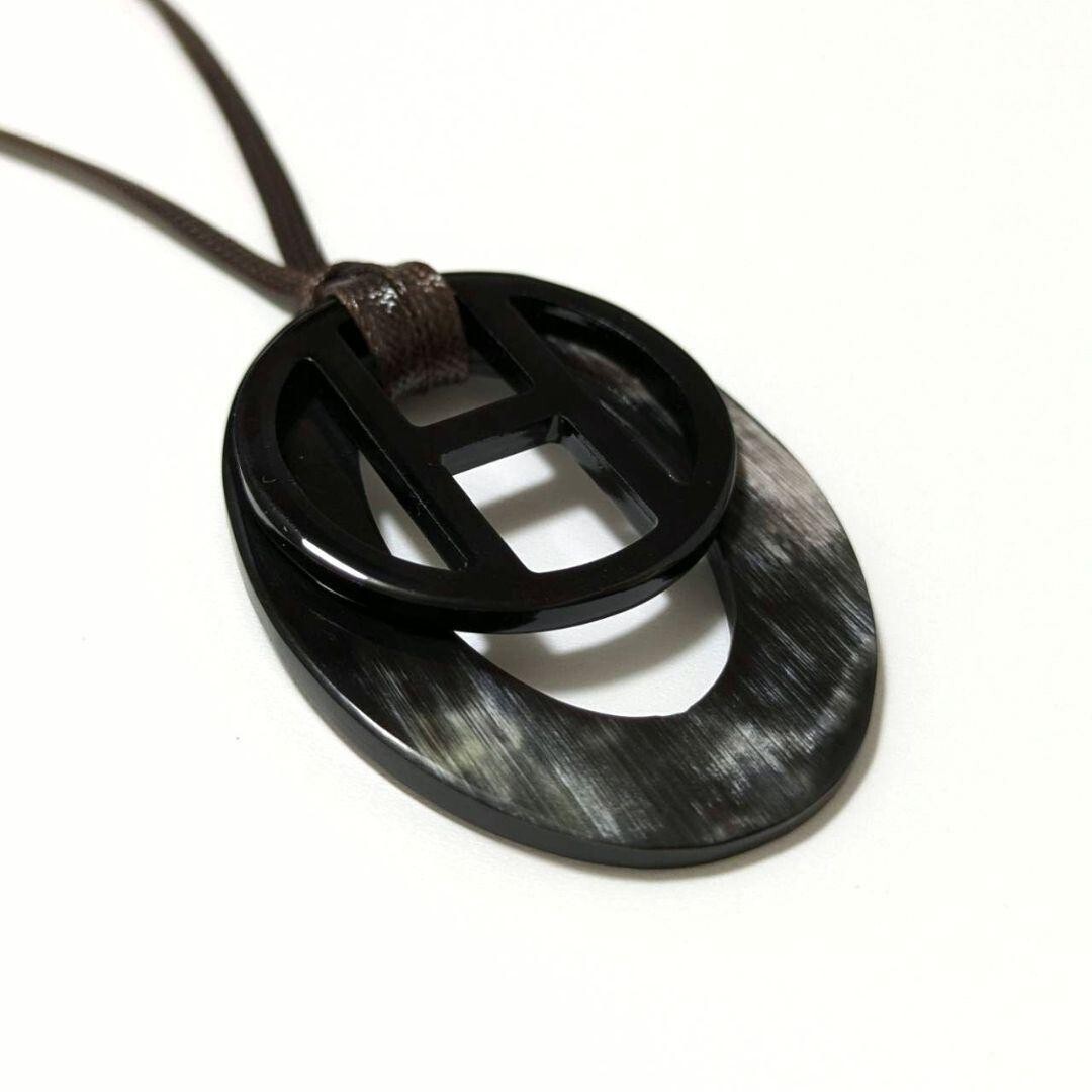BN264 ブラック系 イニシャルH 水牛ネックレス バッファローホーン オーバル&サークル2連重ね