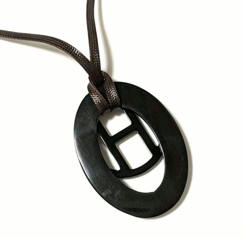 自然素材の力強さと洗練されたデザインが融合したバッファローホーンのイニシャルHネックレスです