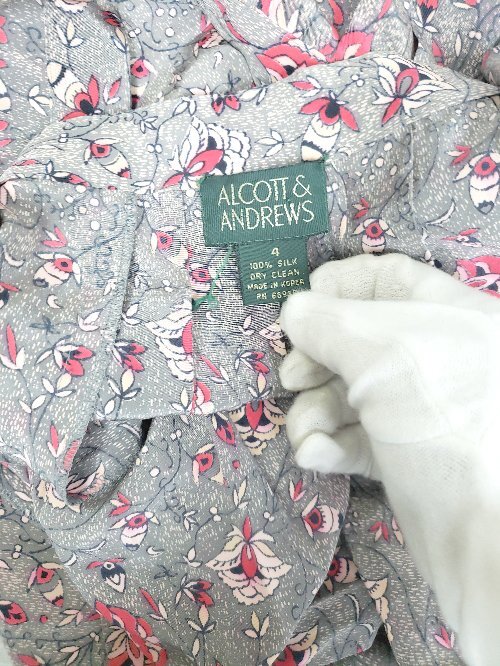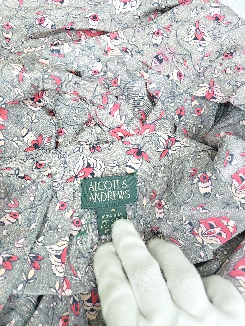 ◇ Alcott & Andrews 総柄 ロング丈 プリーツ スカート サイズ4 グレー マルチ レディース P