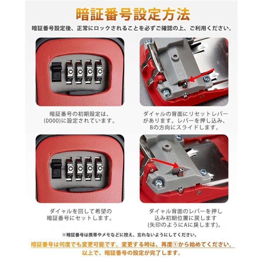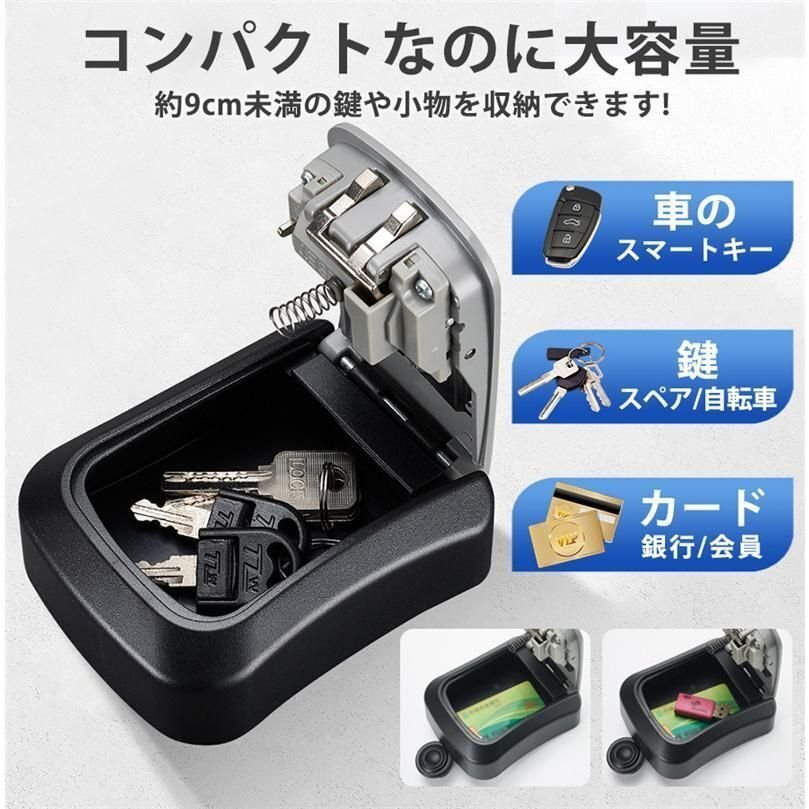 鍵収納 キーケース 保管 盗難防止 大容量 壁掛け おしゃれ ダイヤル式 屋外 玄関 小型 南京錠 ポスト鍵 収納ボックス キーボックス 屋外 セキュリティボックス 小型 セキュリティ 壁掛け 玄関 防水 防犯 本体サイズ約:11.6*9.7*4cm 防水カバーが汚れや腐食、錆を防ぎます。 4桁のダイヤルロック式で10000通りの設定が可能。 家族との共有、介護ヘルパーさんやハウスキーバーさんとの共有、実家の鍵の共有などに便利。 重厚感があり、とても頑丈なキーボックスになります。 色々な使い方ができるので、1つあるととても便利です!! 防水・防塵だから雨風のあたる屋外にも設置できるので安全です。