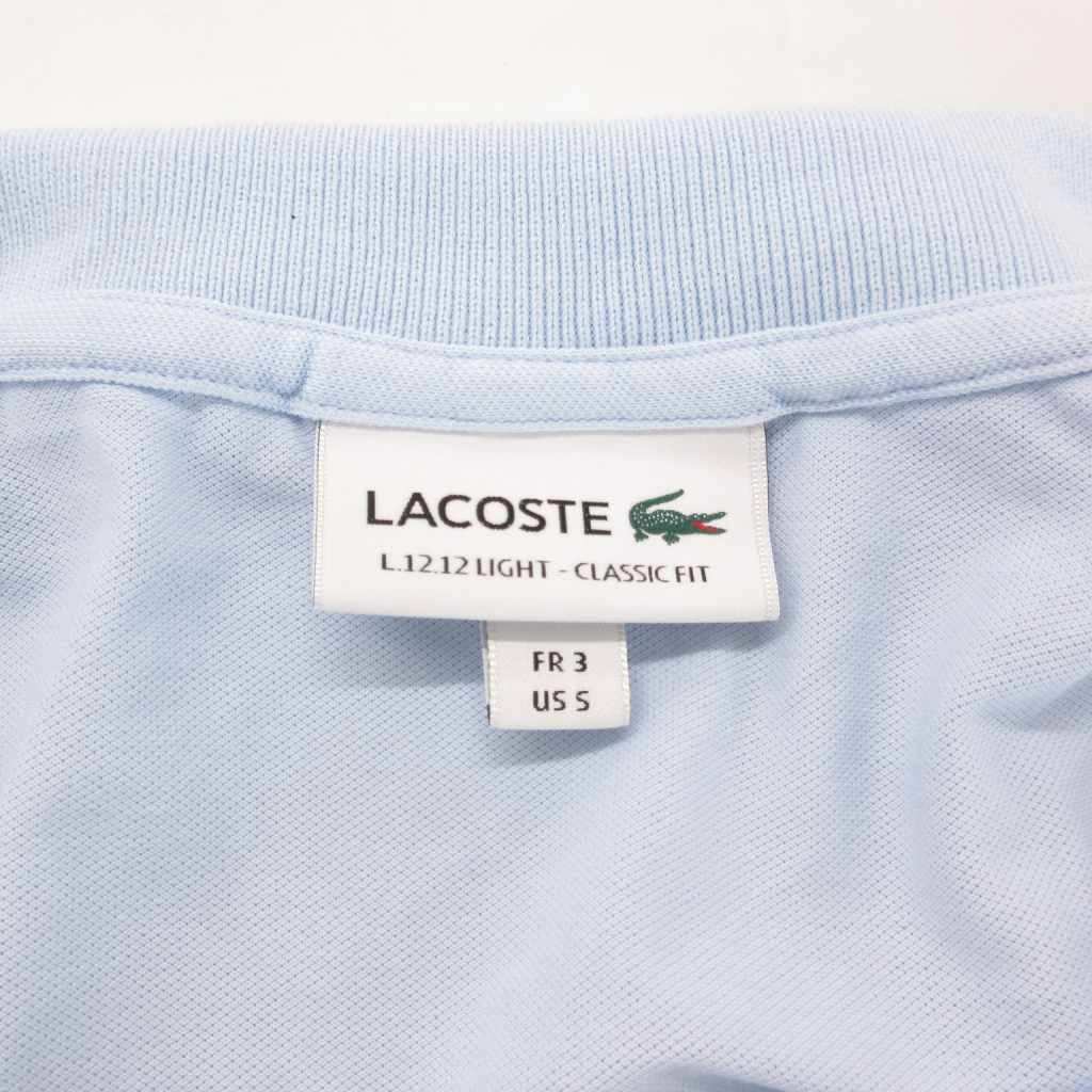 ラコステ LACOSTE 美品 L.12.12 ライト ポロシャツ ロゴ刺繍 半袖 S ライトブルー 水色 /YJ メンズ