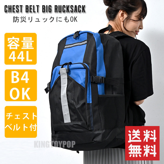 送料無料 地震 台風 対策 大容量 44L リュック メンズ レディース リュックサック 防災バッグ 防災 非常用持ち出し袋 防災グッズ ブルー☆