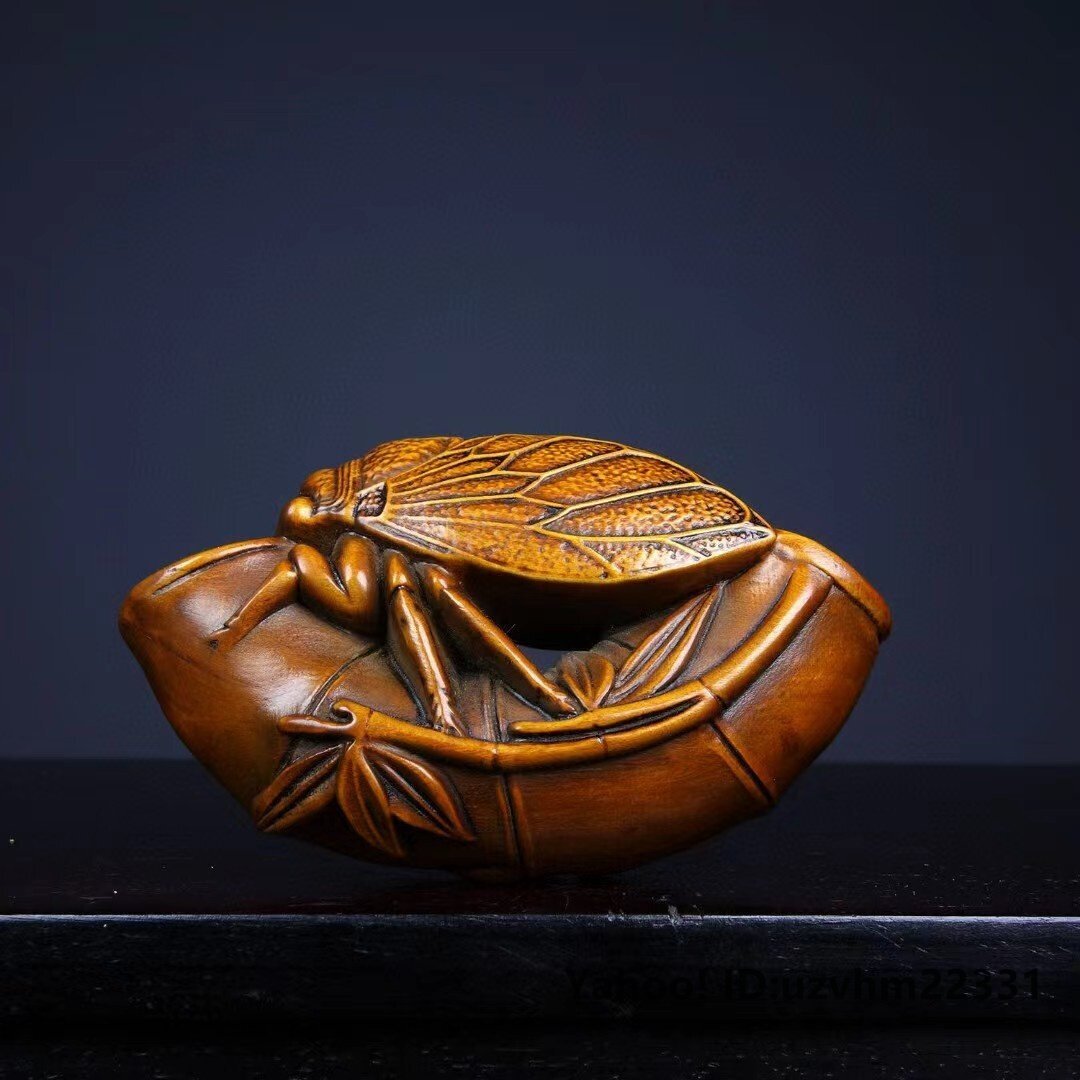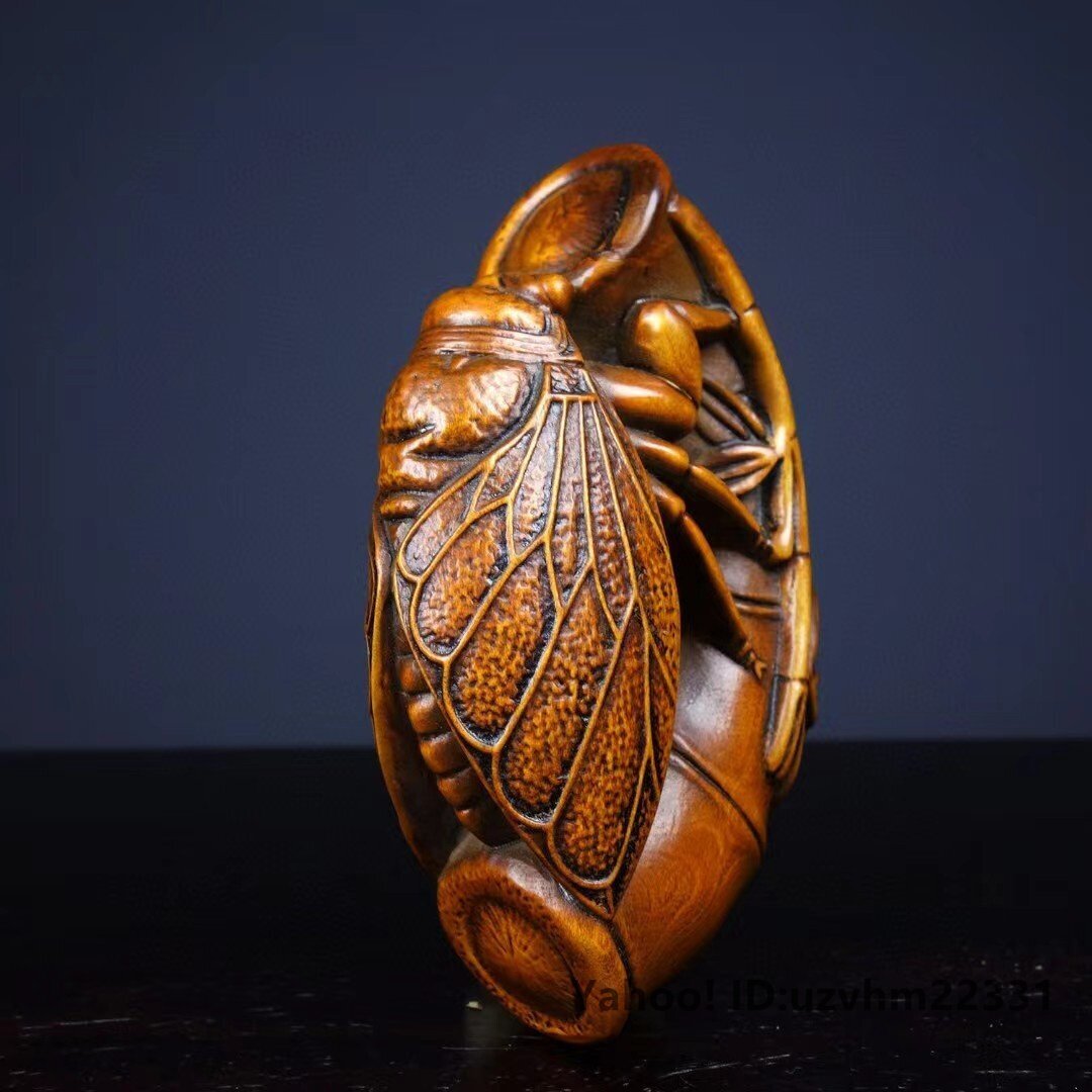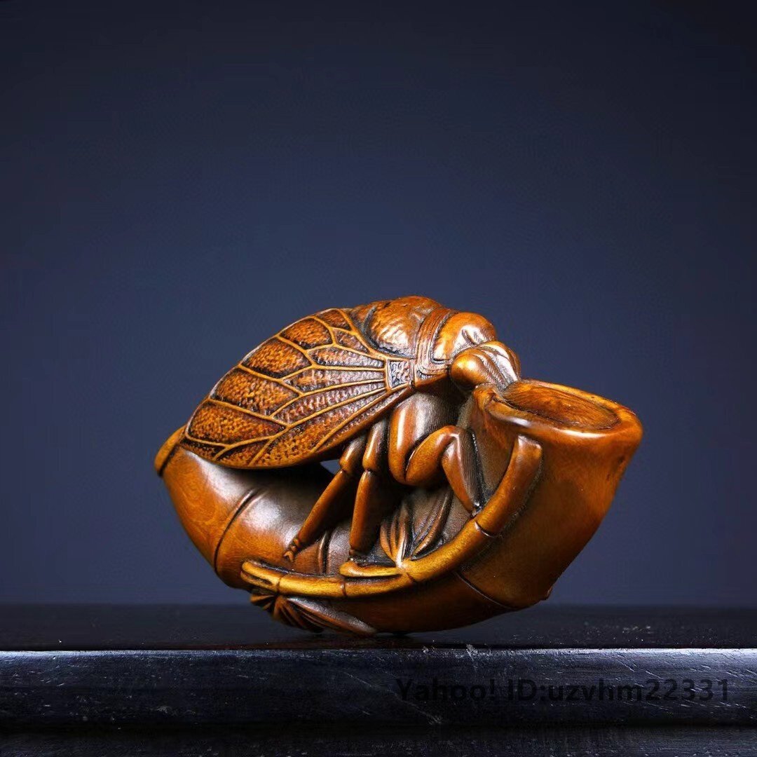 古木彫り ・旧蔵 【 古楊木 雕刻手把件 一鳴驚人 富甲天下】 收藏 時代物 中國文玩 中國古美術品 賞物 置物 家具 木器