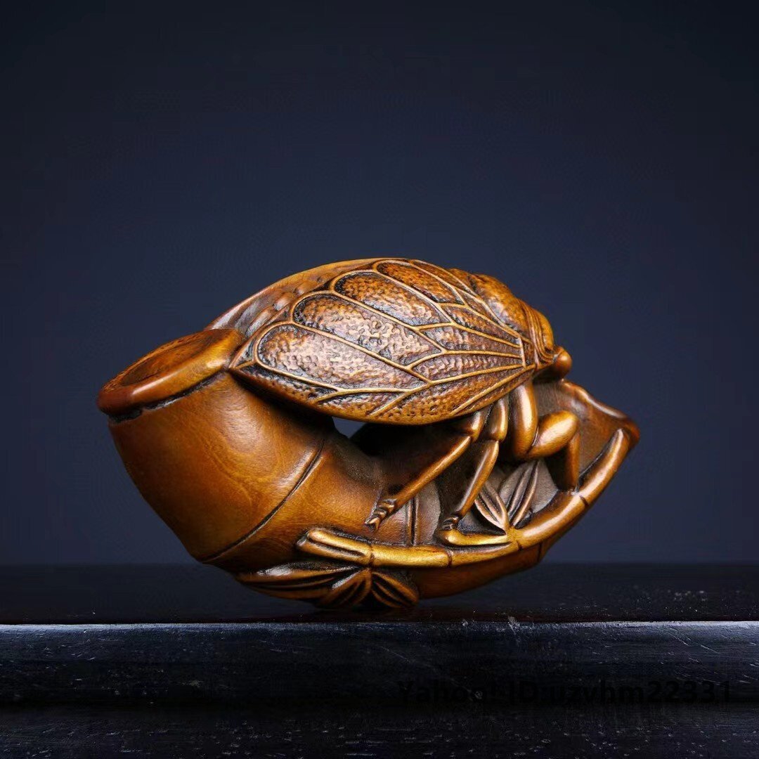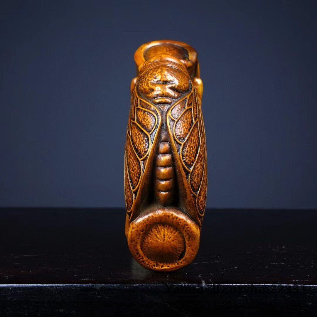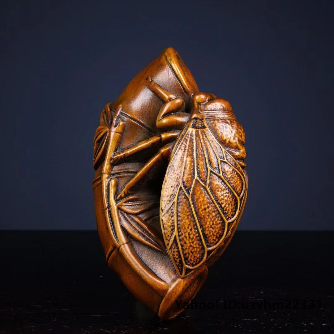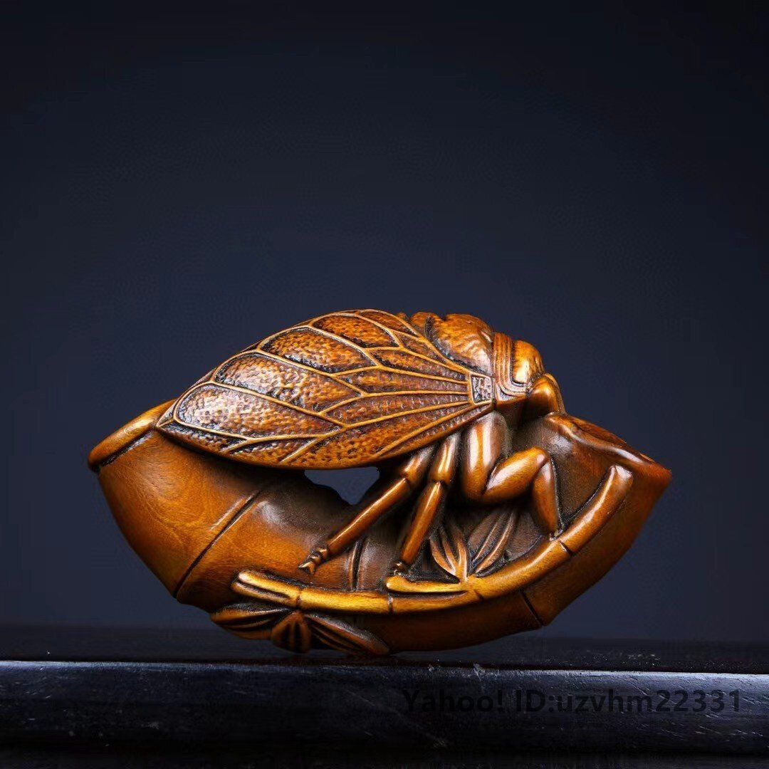 古木彫り ・旧蔵 【 古楊木 雕刻手把件 一鳴驚人 富甲天下】 收藏 時代物 中國文玩 中國古美術品 賞物 置物 家具 木器