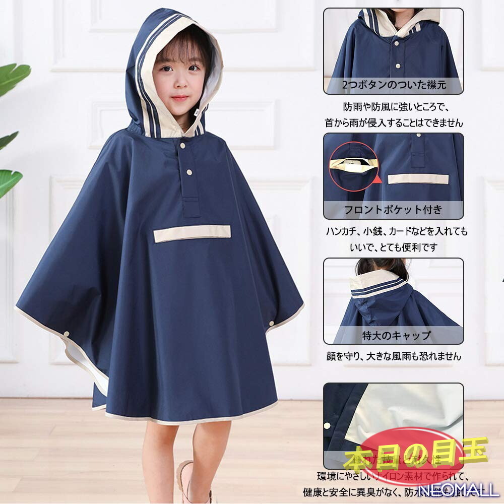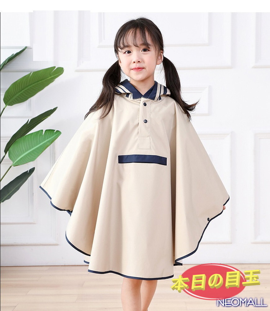 1円~【637】子供用 可愛い レインポンチョ ベージュ Mサイズ 身長 90cm - 115cm 防水 撥水 雨具 雨 雪 ゲリラ豪雨 通園 通学 お出かけ