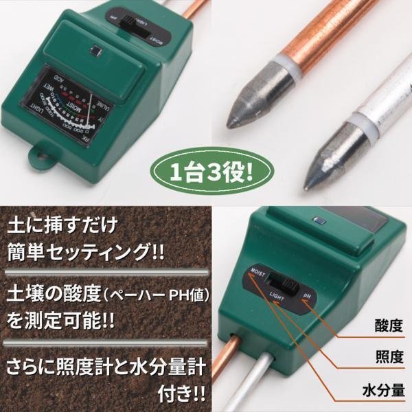 1台3役★土壌酸度計 照度計 水分量 ペーハー PH計 測定