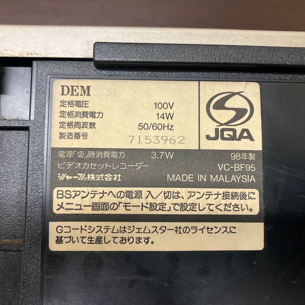 | ★☆SHARP ビデオデッキVC-BF95 G-CODE シャープ 98年製 中古 現状品 通電確認済☆★ | ||