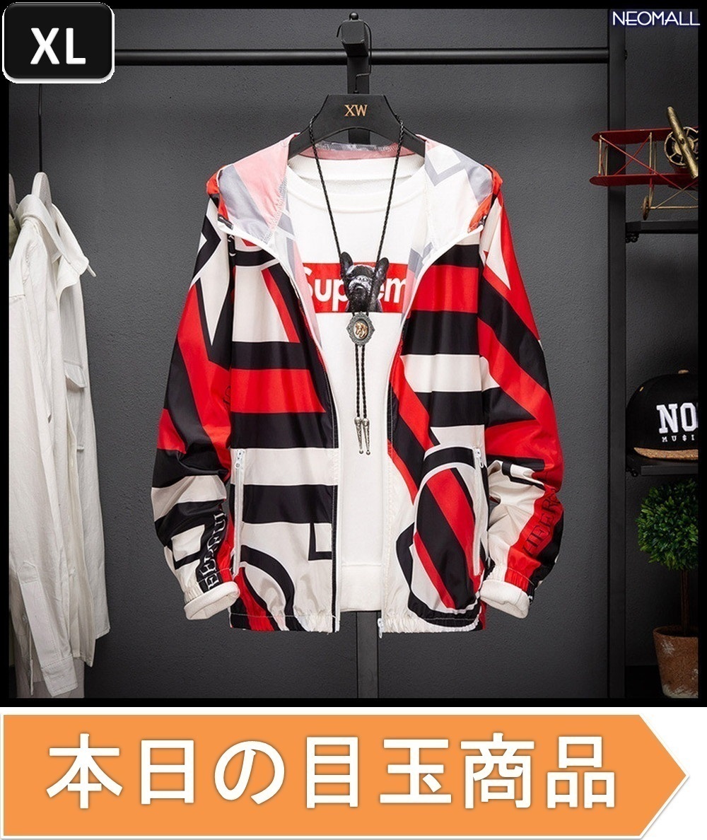 今日の目玉 【374】 ウィンドブレーカー フード付き レッド XL メンズ ナイロン カモフラ 柄 アウトドア 防風 軽量 ジャケット
