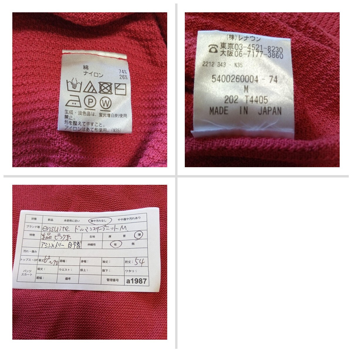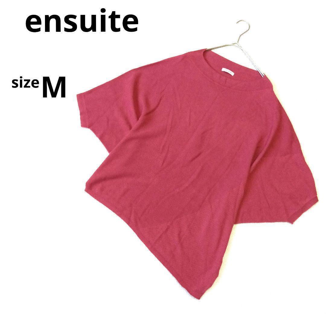 美品 エンスウィート ドルマンスリーブニットM アシンメトリー ピンク系 日本製 3671BC