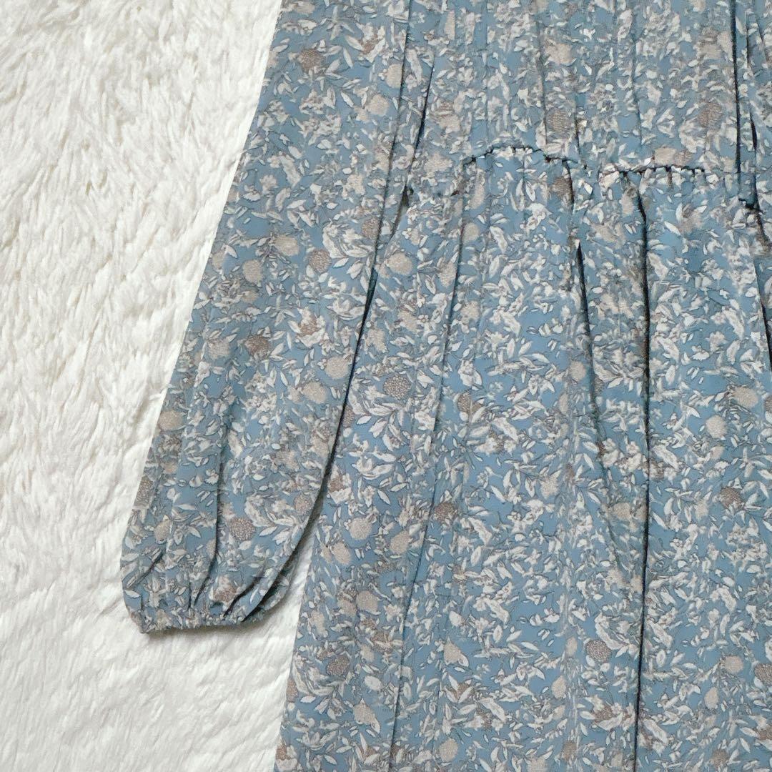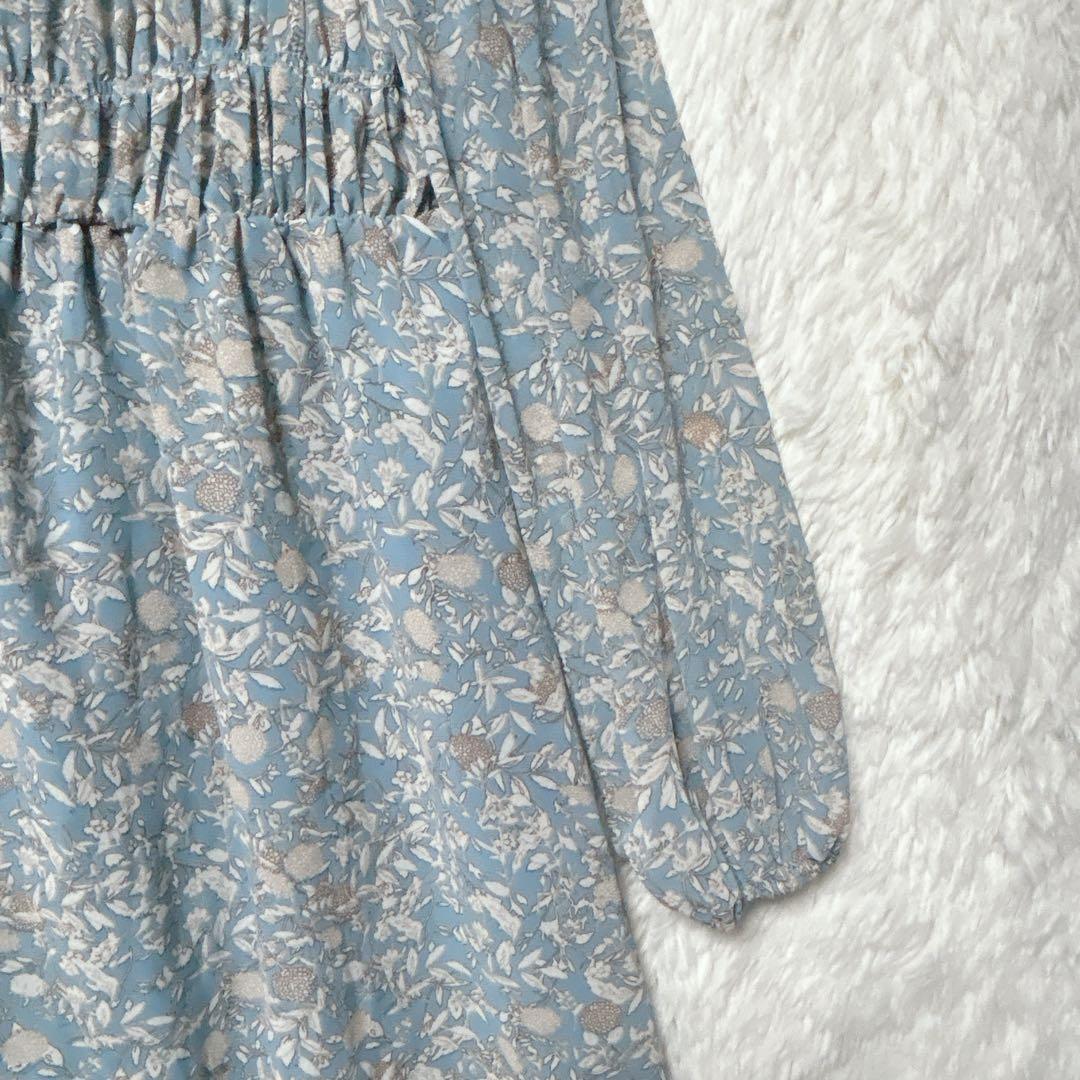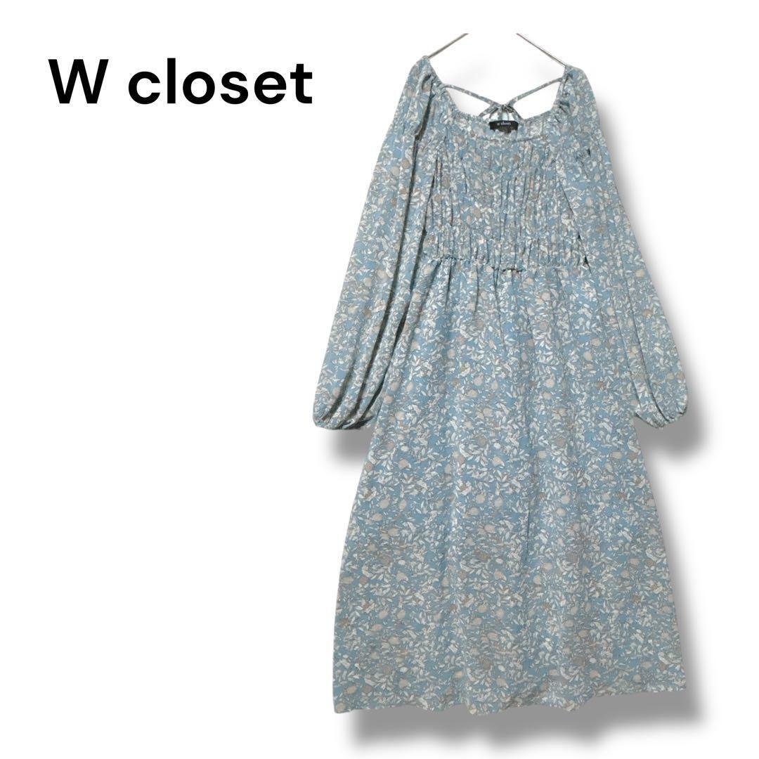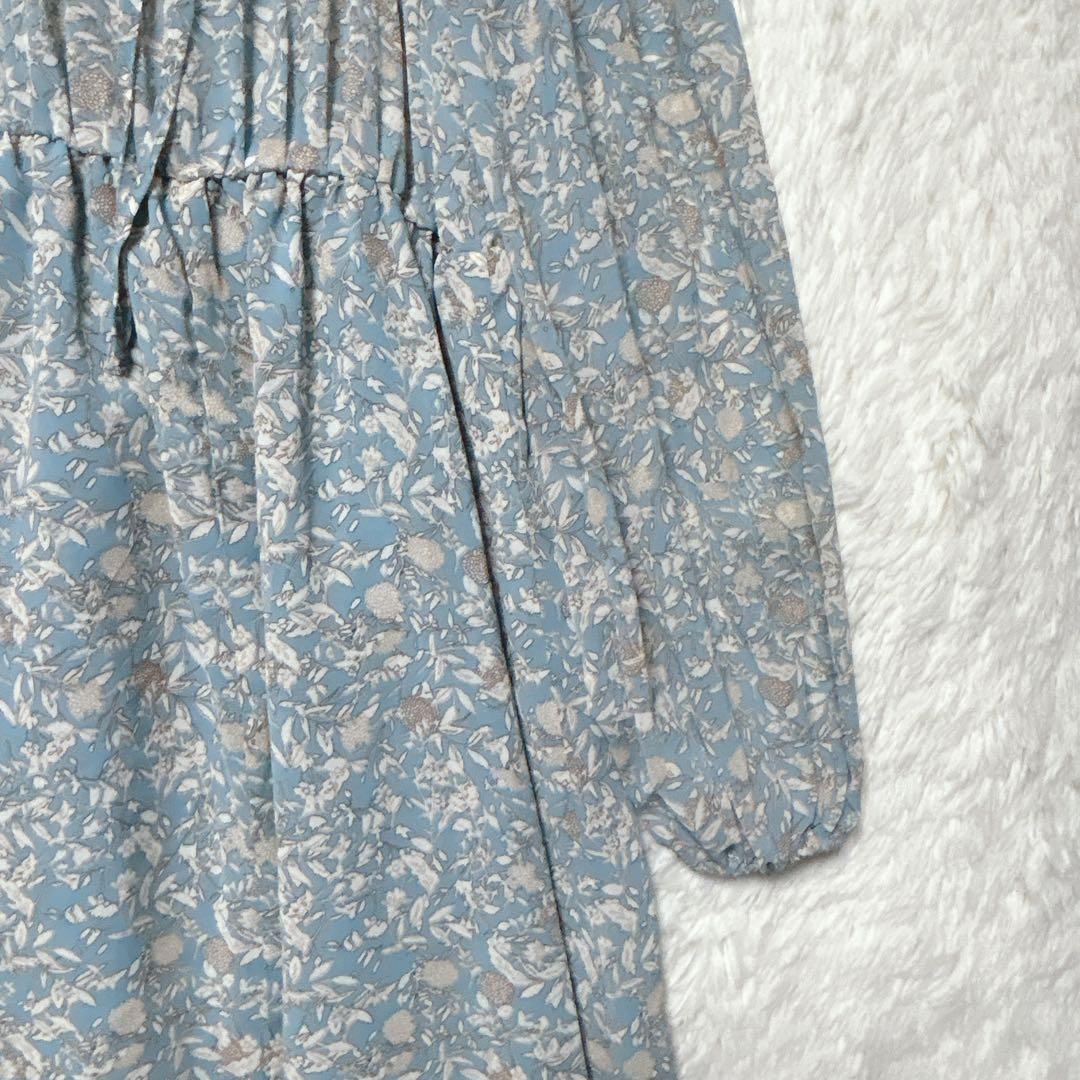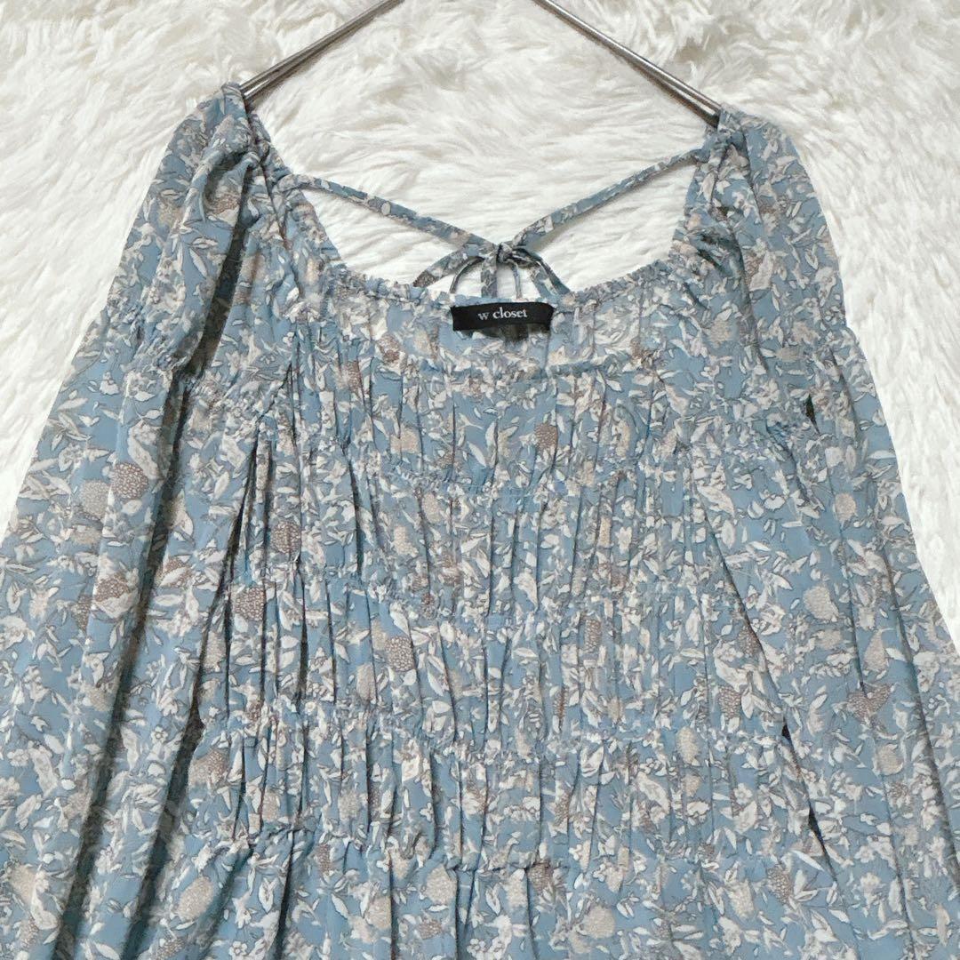ダブルクローゼット ワンピース ロング ライトブルー F 花柄 シアー 長袖 44ABA1