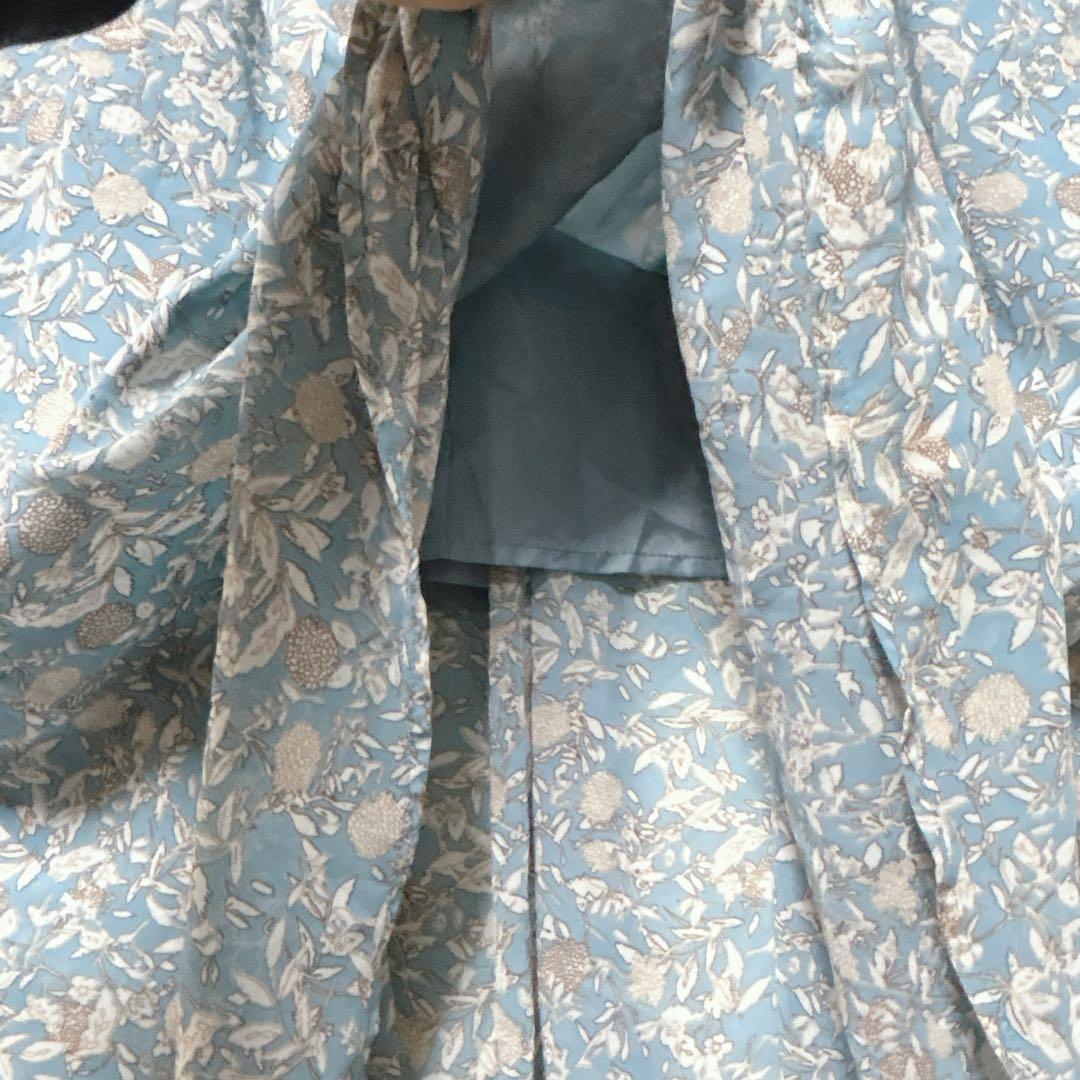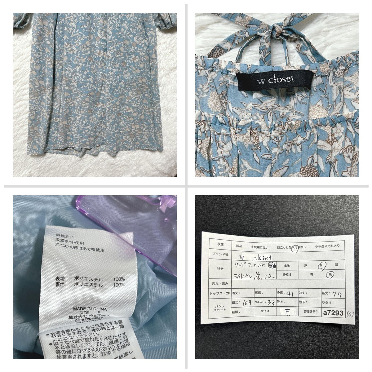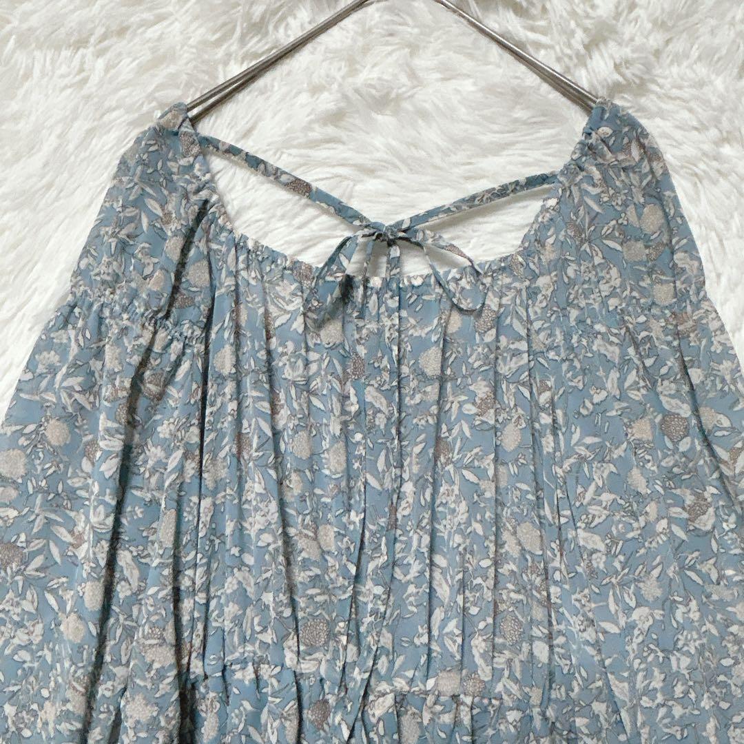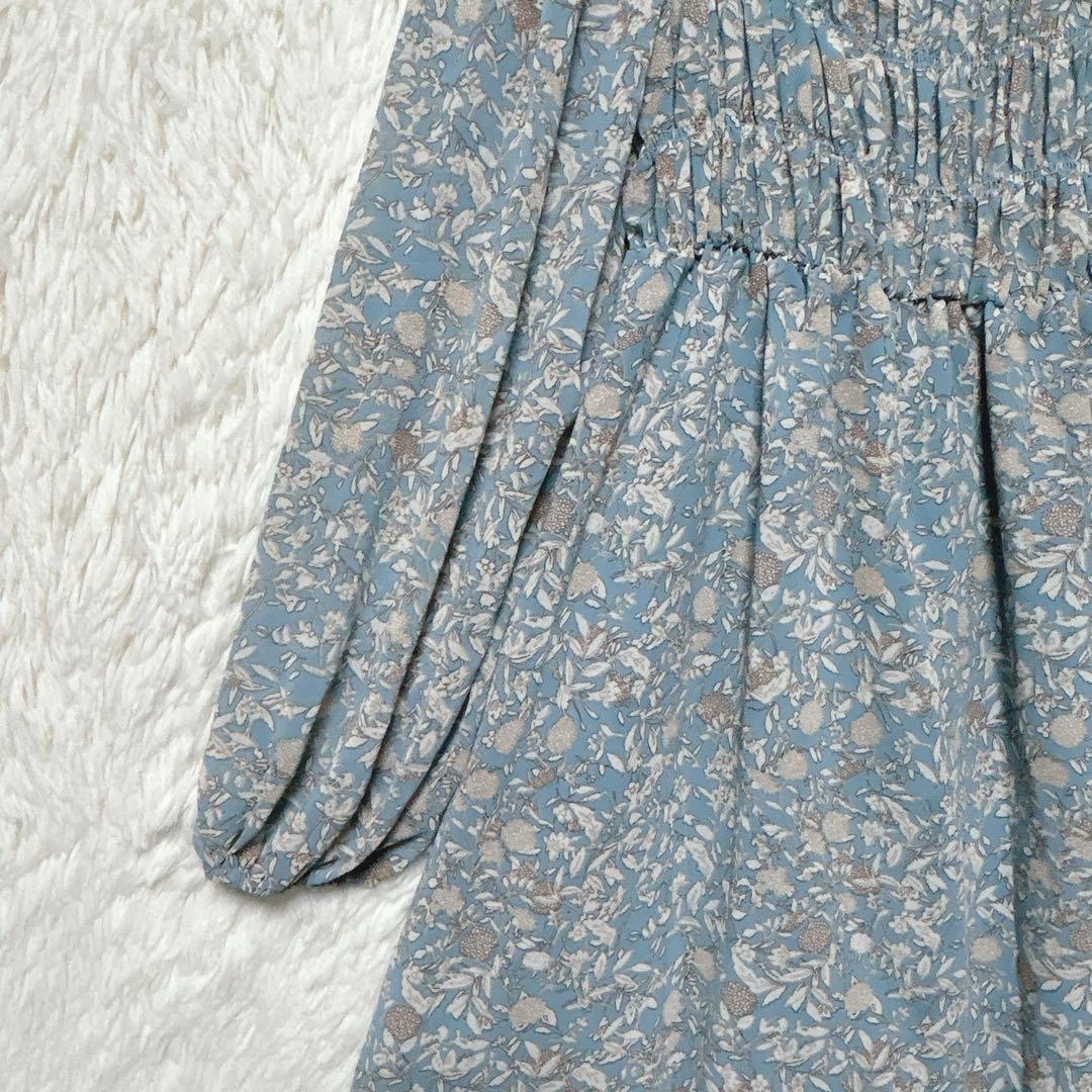 ダブルクローゼット ワンピース ロング ライトブルー F 花柄 シアー 長袖 44ABA1