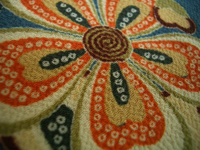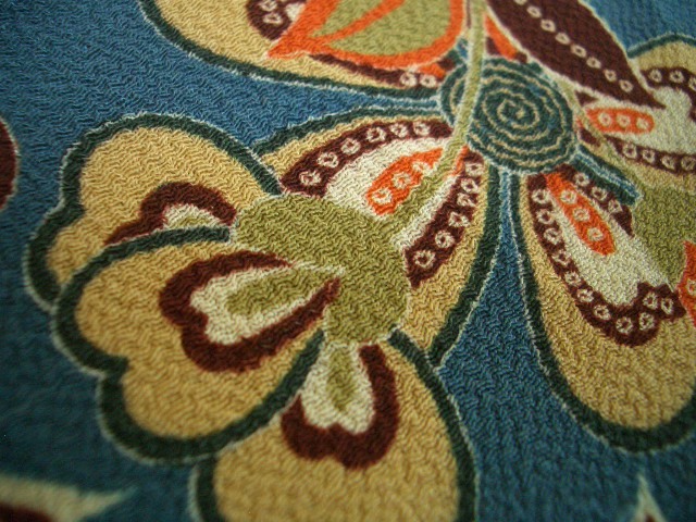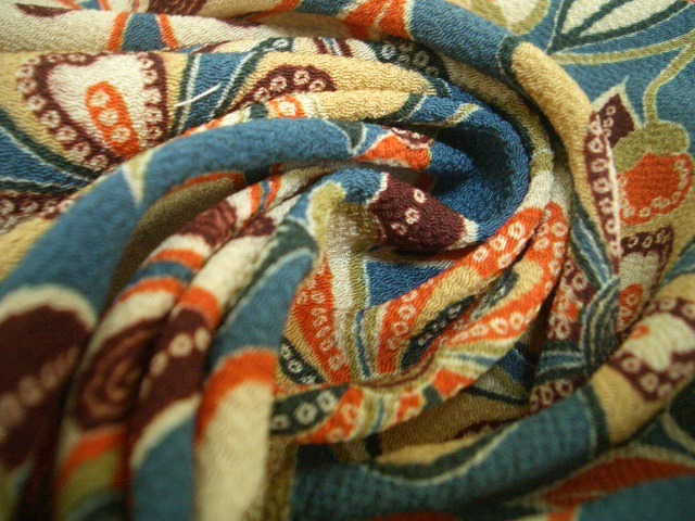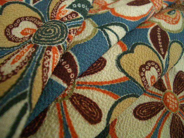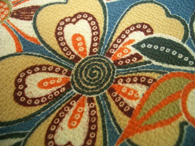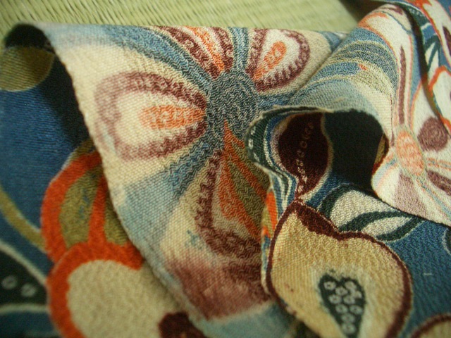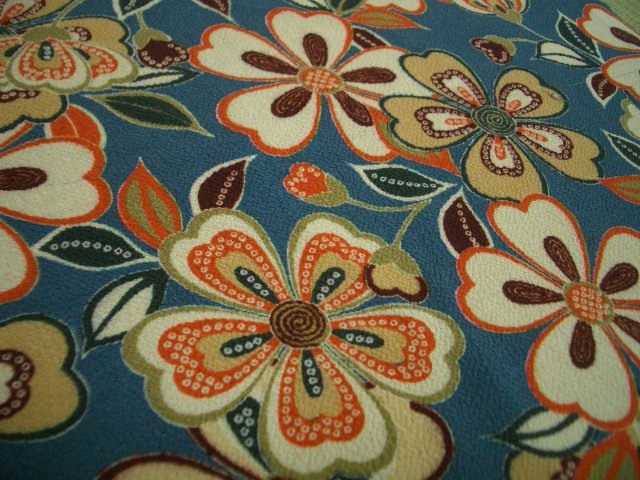 古布正絹縮緬はぎれグレーに花 30×59㎝ アンティーク昔着物リメイク古裂ちりめん細工