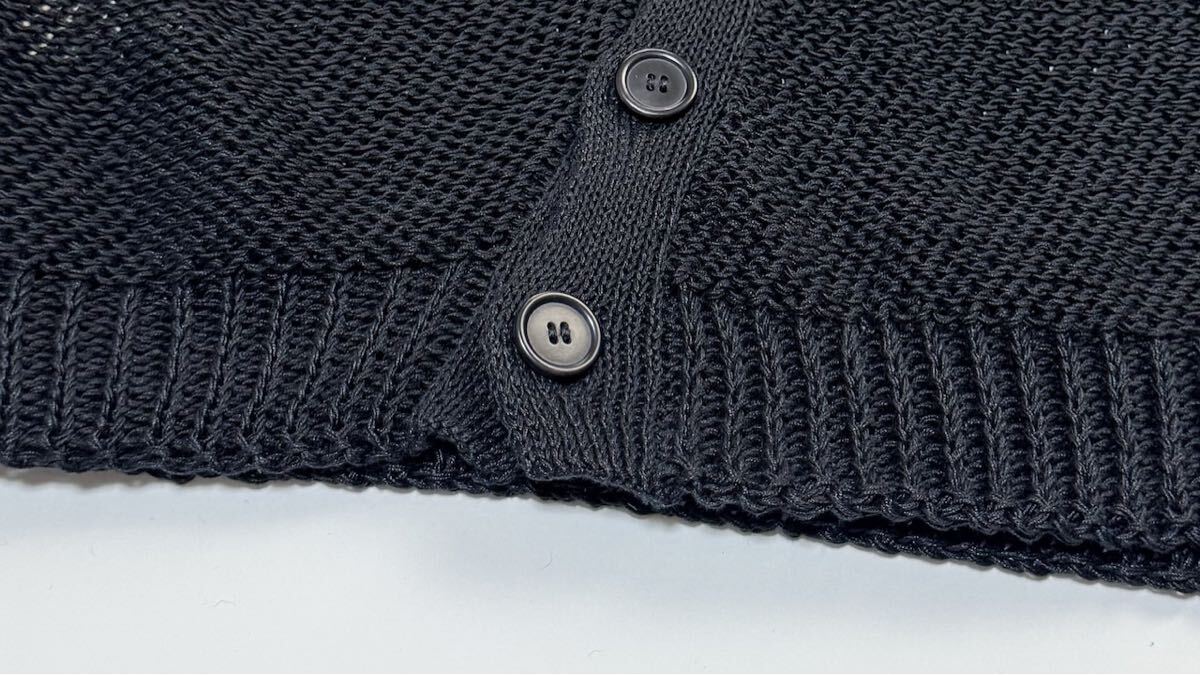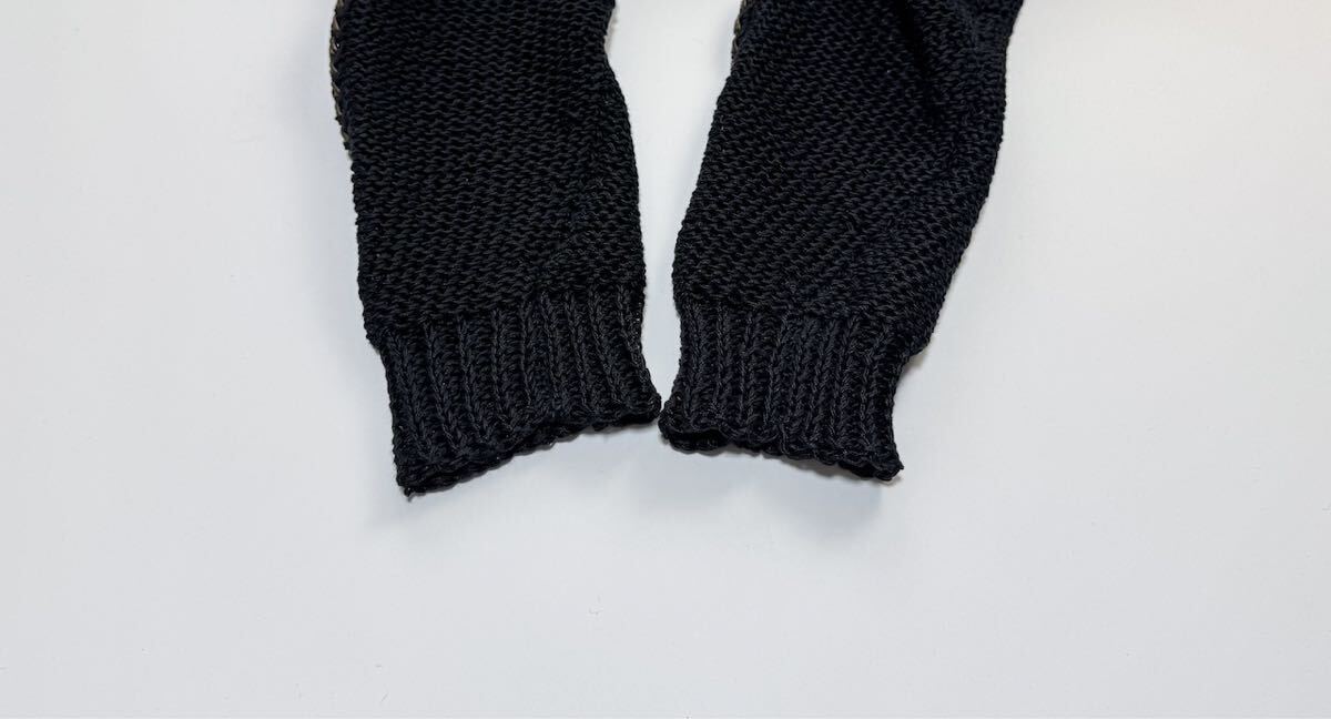 糸の飛び出しや若干の毛羽立ち、裾リブ部分や袖口に若干のヨレが見られます。