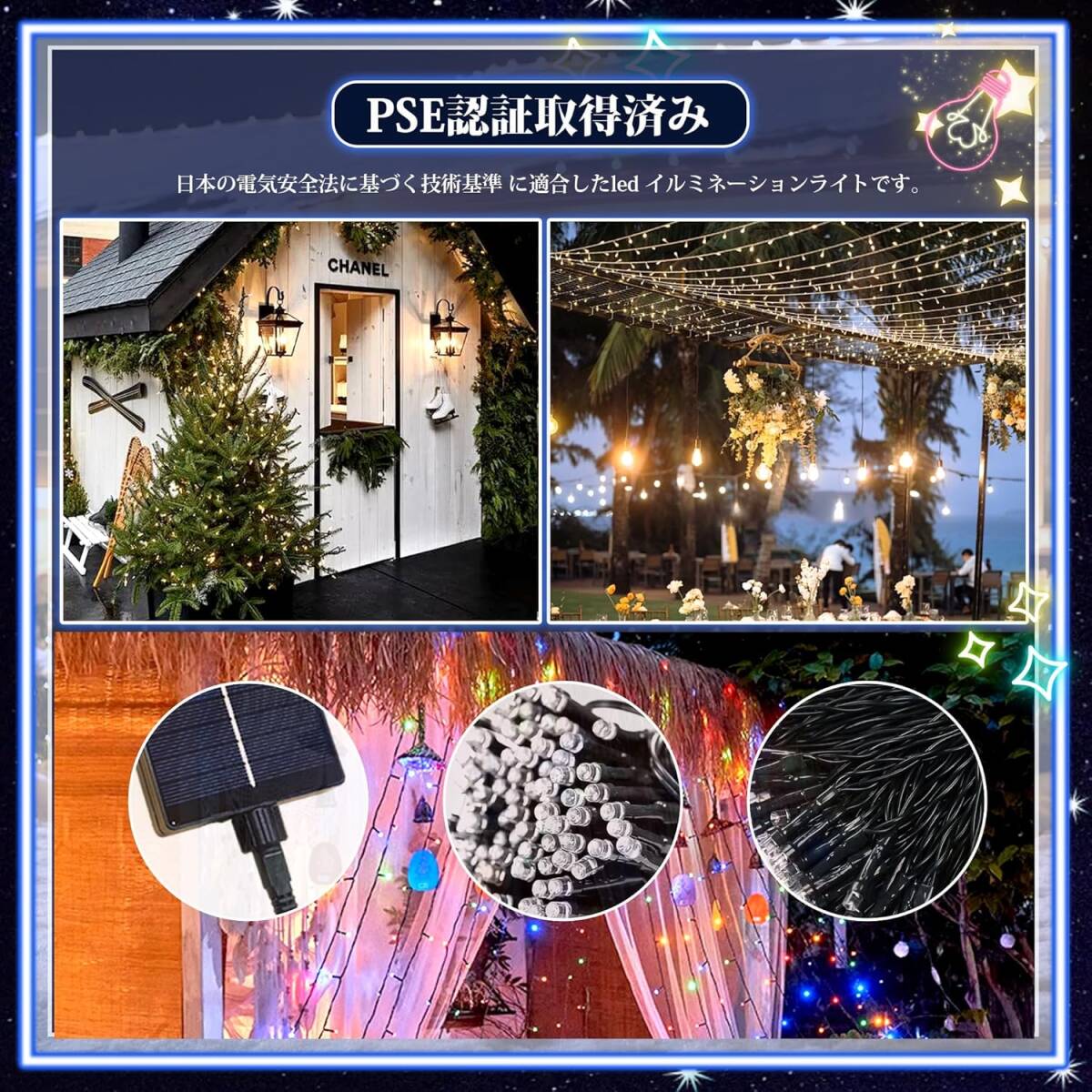 シャンパンゴールド色 イルミネーションライト ソーラー 200球 20m ドレープライト ストリップライト クリスマス ストレート led