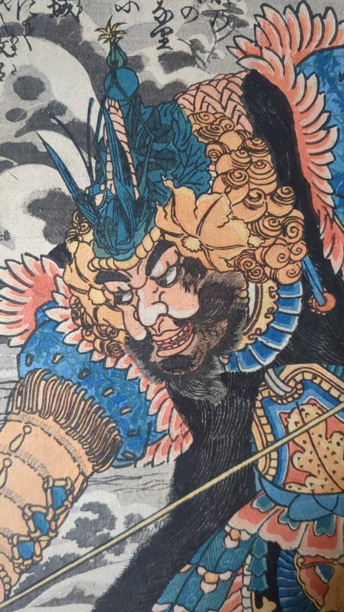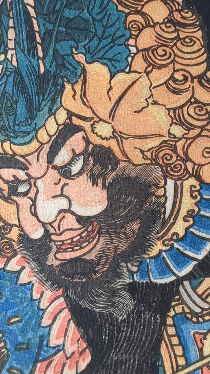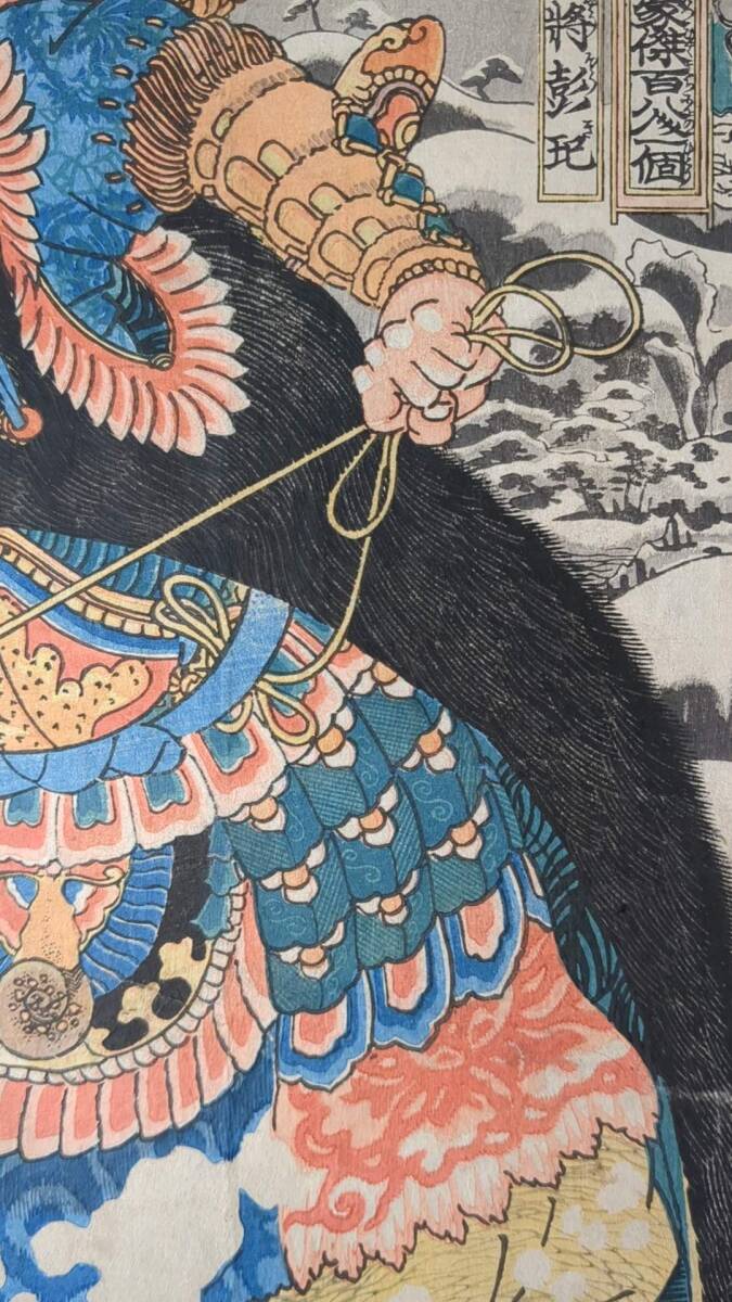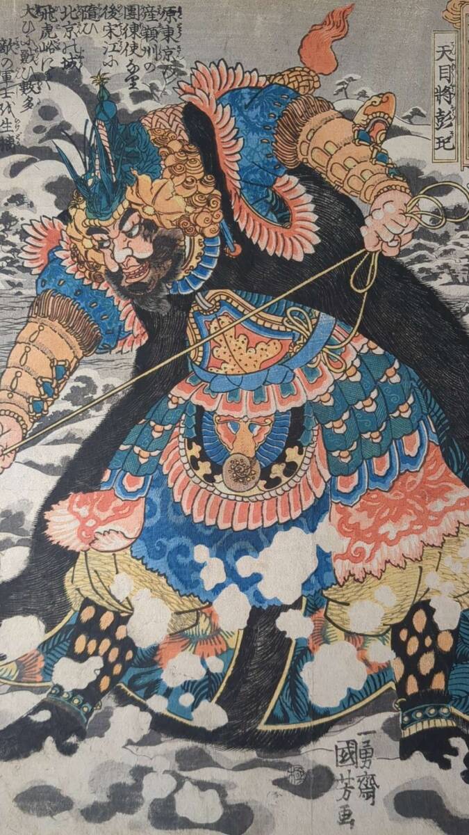 合005 浮世絵 真作 版画  歌川国芳「通俗水滸伝豪傑百八人之一個 天目将彭」 木版画 錦絵