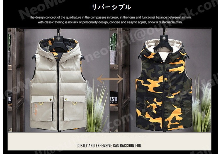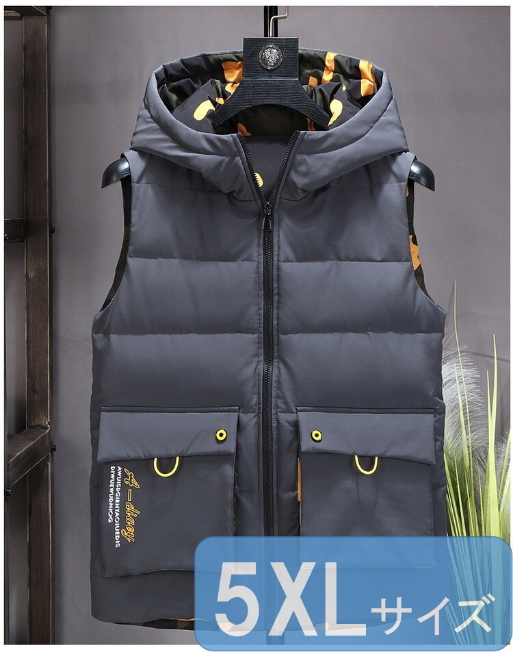 リバーシブル メンズ ダウンベスト 998 グレー 5XLサイズ 中綿ダウン 中綿ベスト キルティング アウター 防寒 秋冬 暖かい