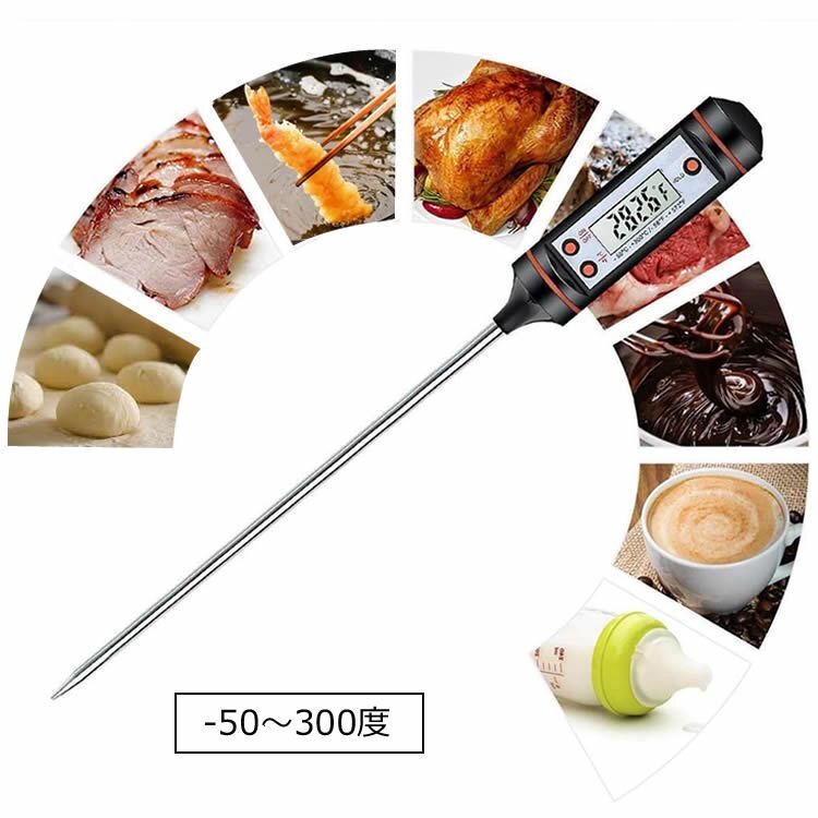 -50〜300度まで幅広く測定可能なクッキング温度計です。