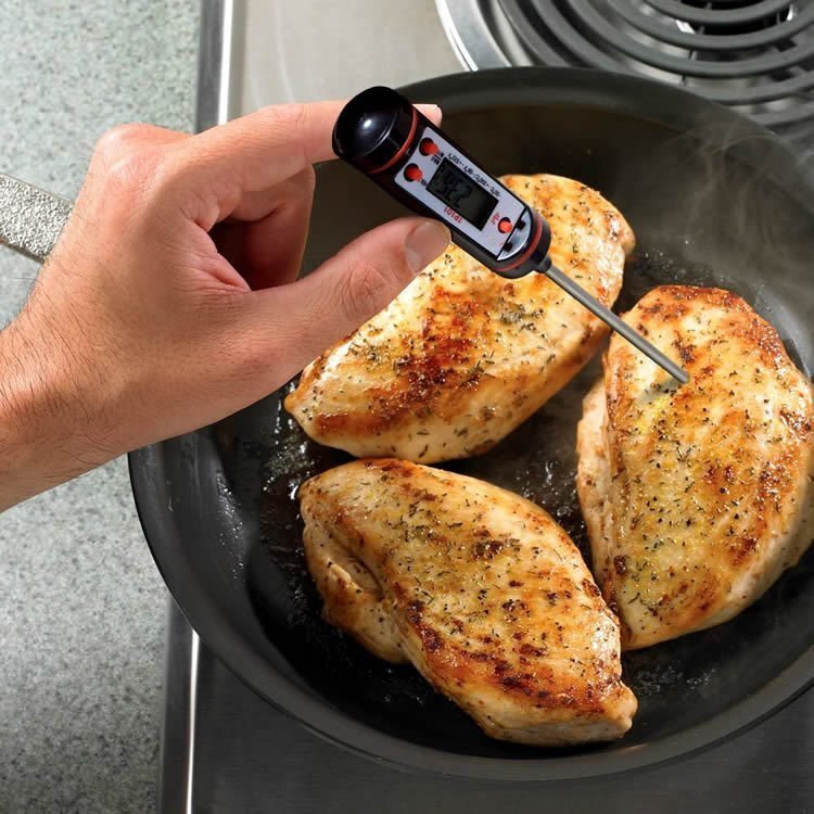天ぷらや揚げ物の油、赤ちゃん用のミルク、お肉、パン生地、コーヒーなどの温度を測定可能です。