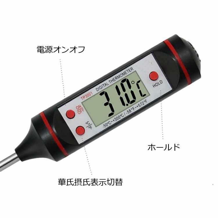 ◆クッキングデジタル温度計 -50〜300度まで測定可能 デジタル表示 自動でシャットダウン 約23cm 油温計 水温計 調理 料理 揚げ物 天ぷら ミルク ホールド機能 FDTMP3001
