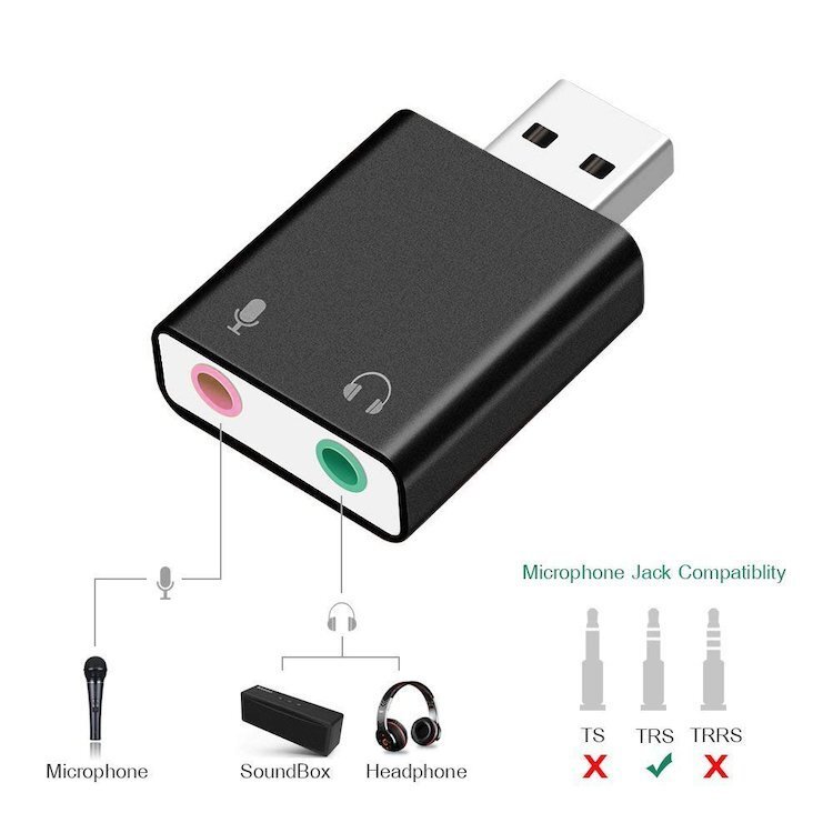 音声出力用の3.5mmミニジャックとモノラル入力ジャックが、USBポートに差し込むだけで使用可能になります。