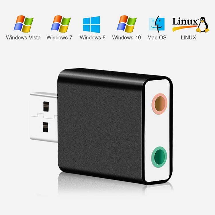 ◆USB外付けサウンドカード USB⇔オーディオ変換アダプタ 3.5mmミニジャック ヘッドホン出力/マイク入力対応 小型軽量 5.1ch/3Dサラウンド対応 オーディオインターフェイス PCゲームやボイスチャットに最適 PFUOS15015