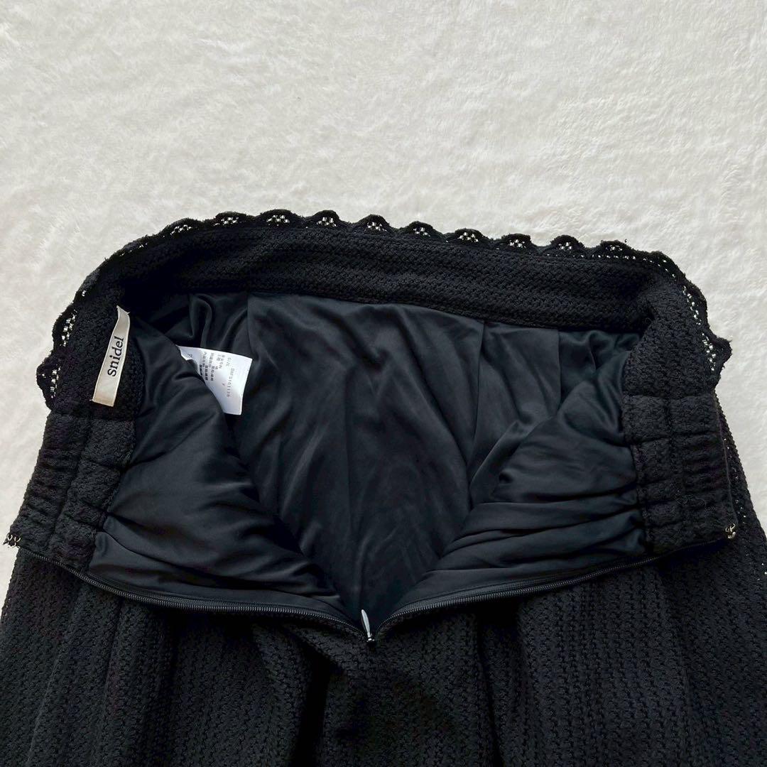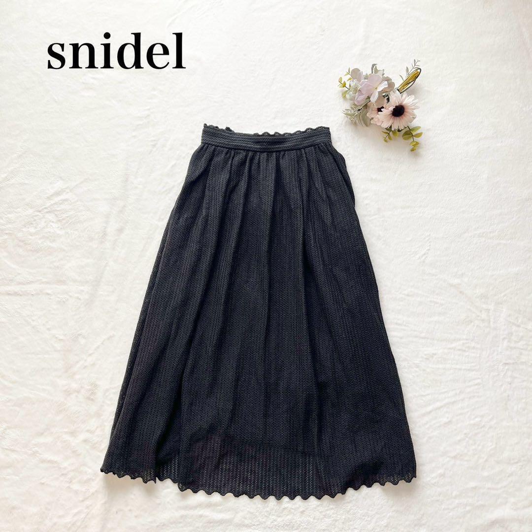【スナイデル】フレアスカート(フリー)刺繍レース スカラップヘム ミモレ丈 黒 1308C5