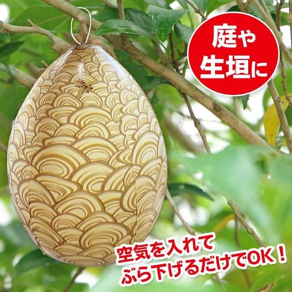 リアルな見た目のスズメバチの巣で、ハチの巣を作られるのを抑止。