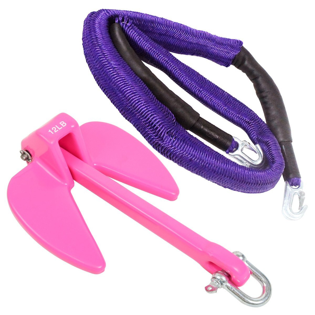 【送料無料】『伸縮ロープ/アンカーセット』ジェットスキー 爪型 アンカー 12LBS 5.5kg ピンク 6M フロート のびのび アンカー ロープ 紫