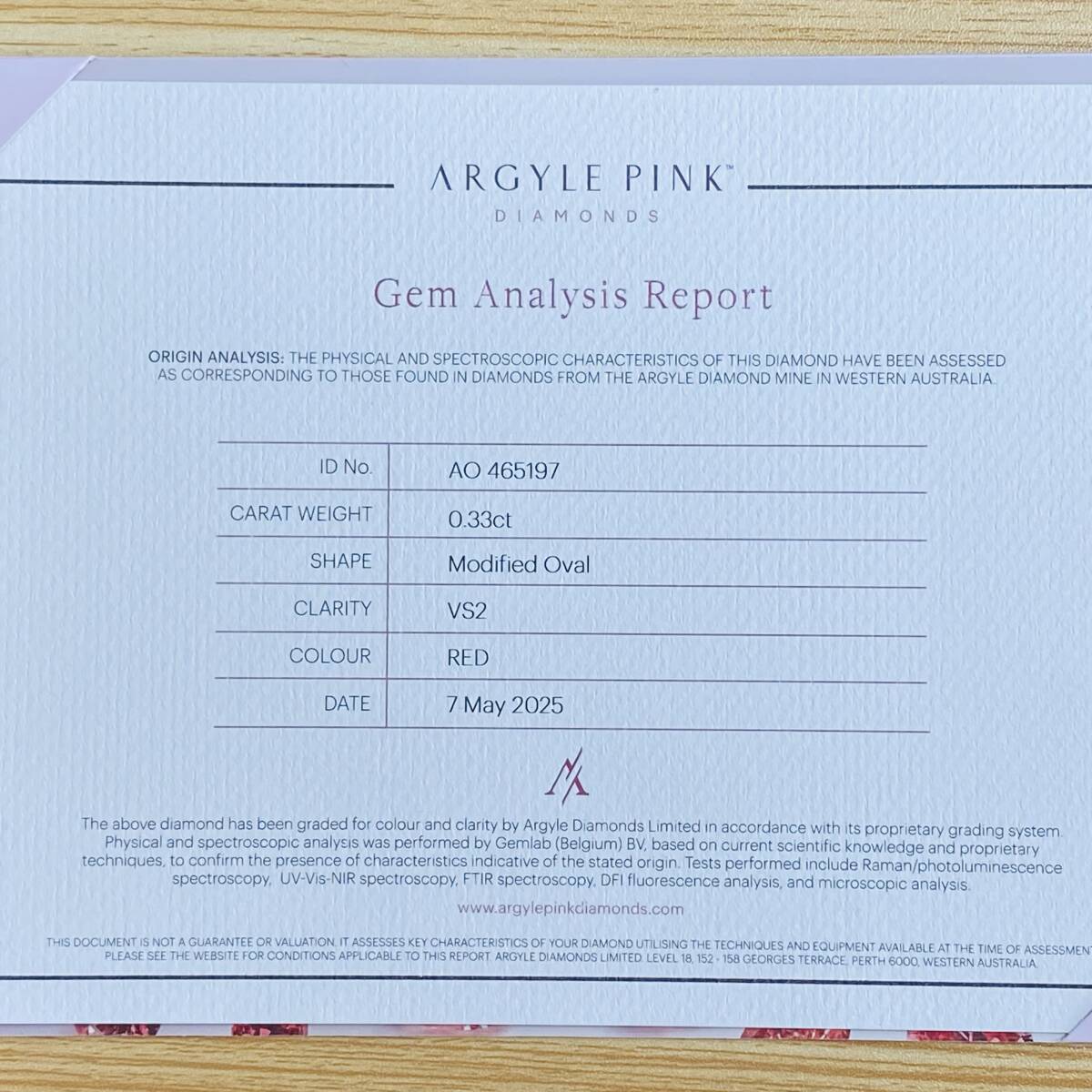 こちらはのREDはアーガイルでの証明書でREDと出ている