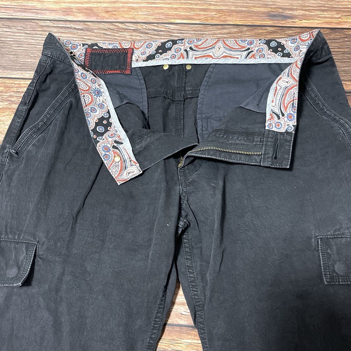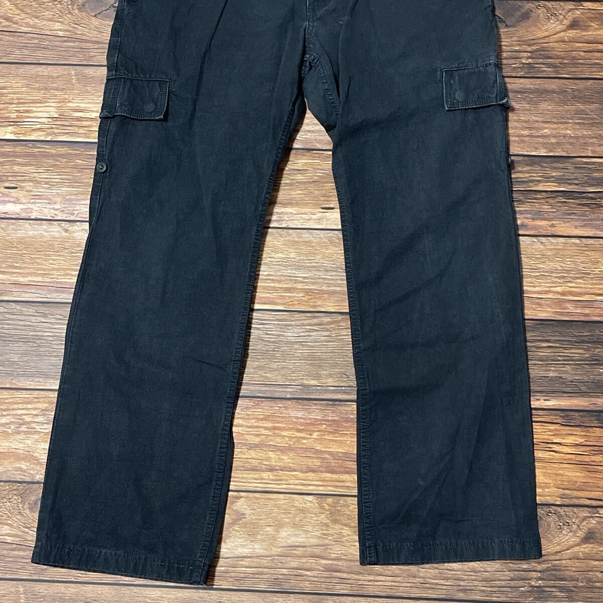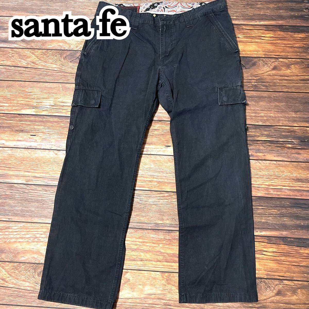 santa fe サンタフェ パンツ カーゴパンツ メンズ ボトムス コットン 麻 無地 ポケット付 ゆったり 大きめ カジュアル ブラック 35 XL
