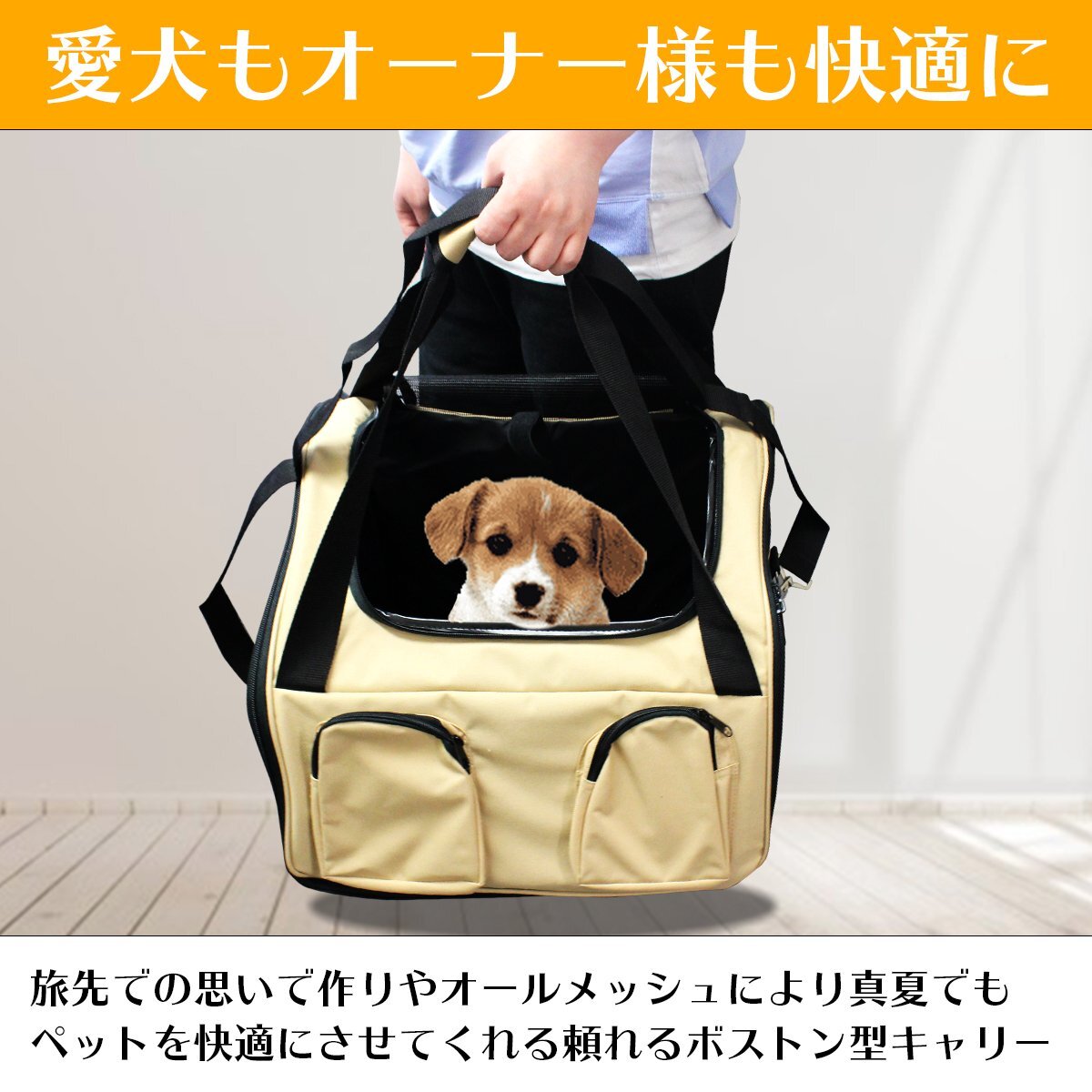 送料無料~』便利な2way♪キャリーバッグ 犬猫兼用 ベージュ ボストンバッグ ショルダーバッグ ペットバッグ ペットキャリー お散歩 旅行