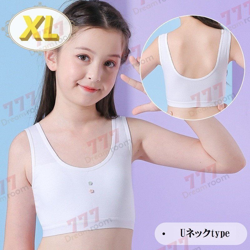 1スタ☆kids Uネック ハーフトップブラ 【XL】ホワイト スポーツブラ 子供 ファーストブラジャーインナー 下着 K-410-wh