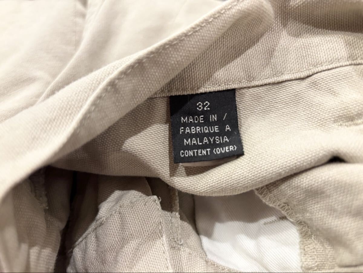 ウエスト81cm、股上25cm、股下29cm、裾幅29.5cm
