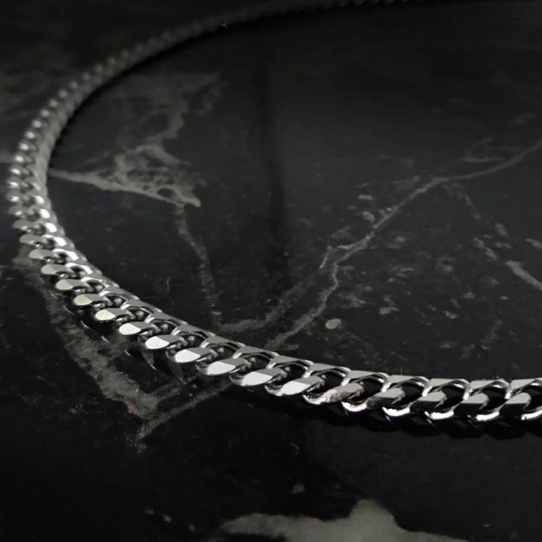 高級感のあるシルバーカラーの6面喜平チェーンネックレスです。