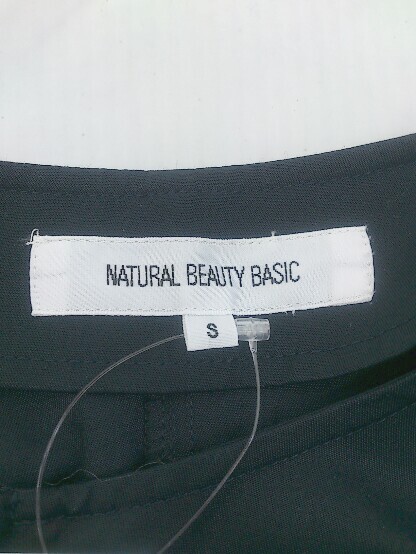 ◇ NATURAL BEAUTY BASIC ナチュラルビューティーベーシック 長袖 ノーカラー ジャケット サイズS ブラック レディース P