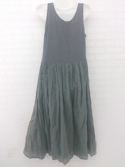 ◇ KBF アーバンリサーチ 切替 シンプル ナチュラル ノースリーブ ロング ワンピース サイズF グレー レディース P