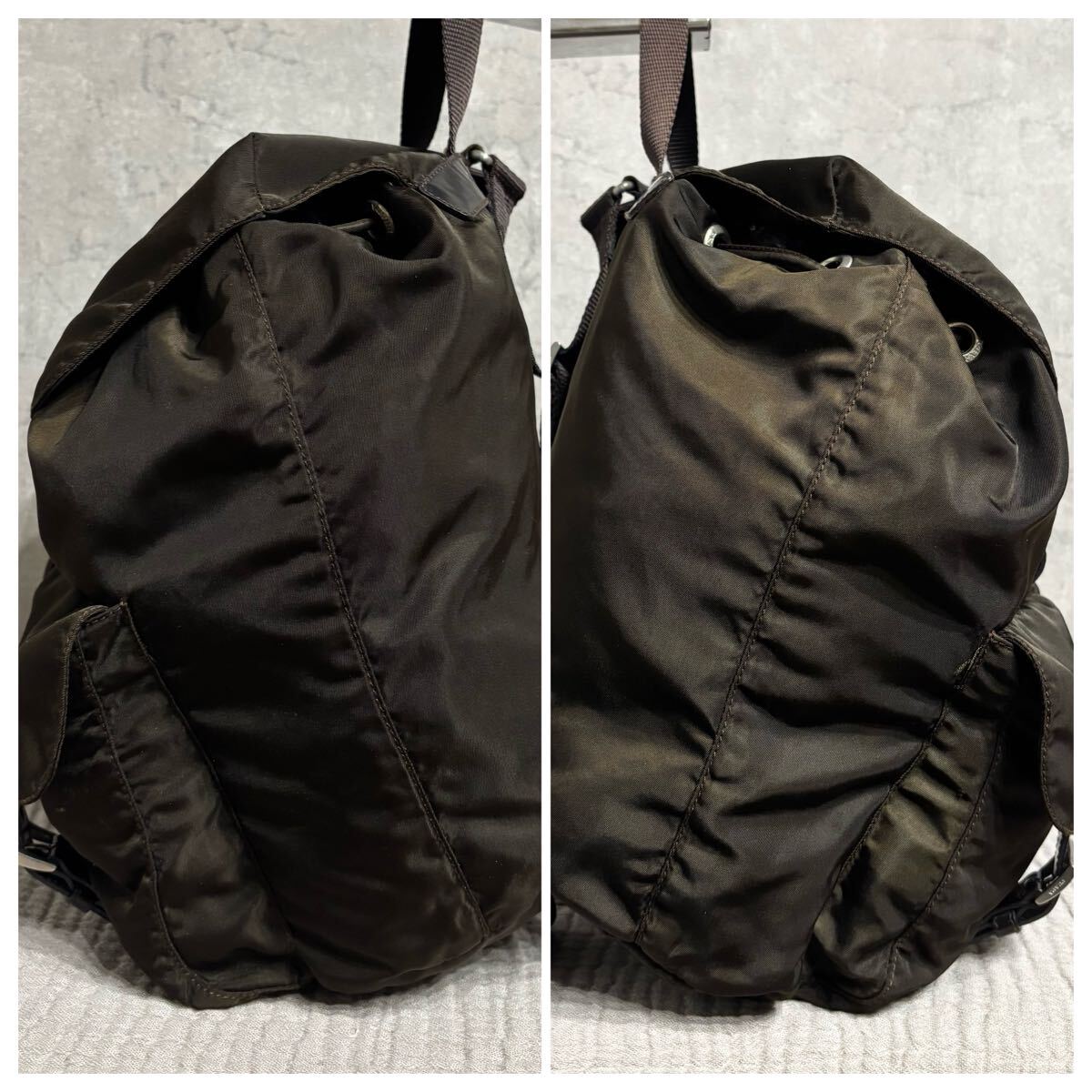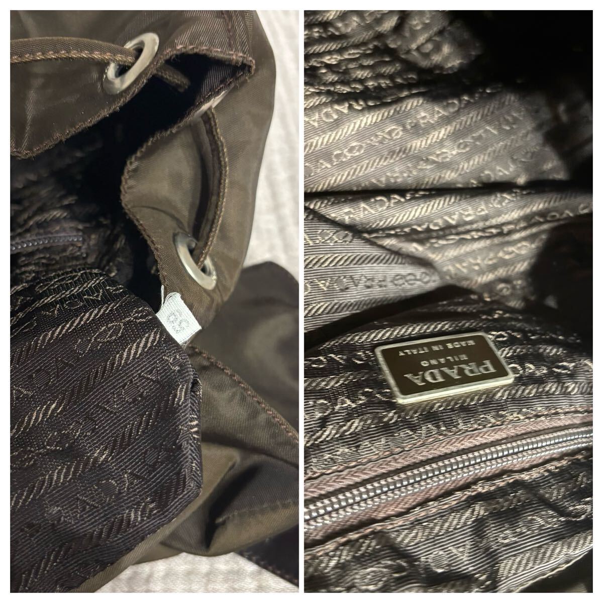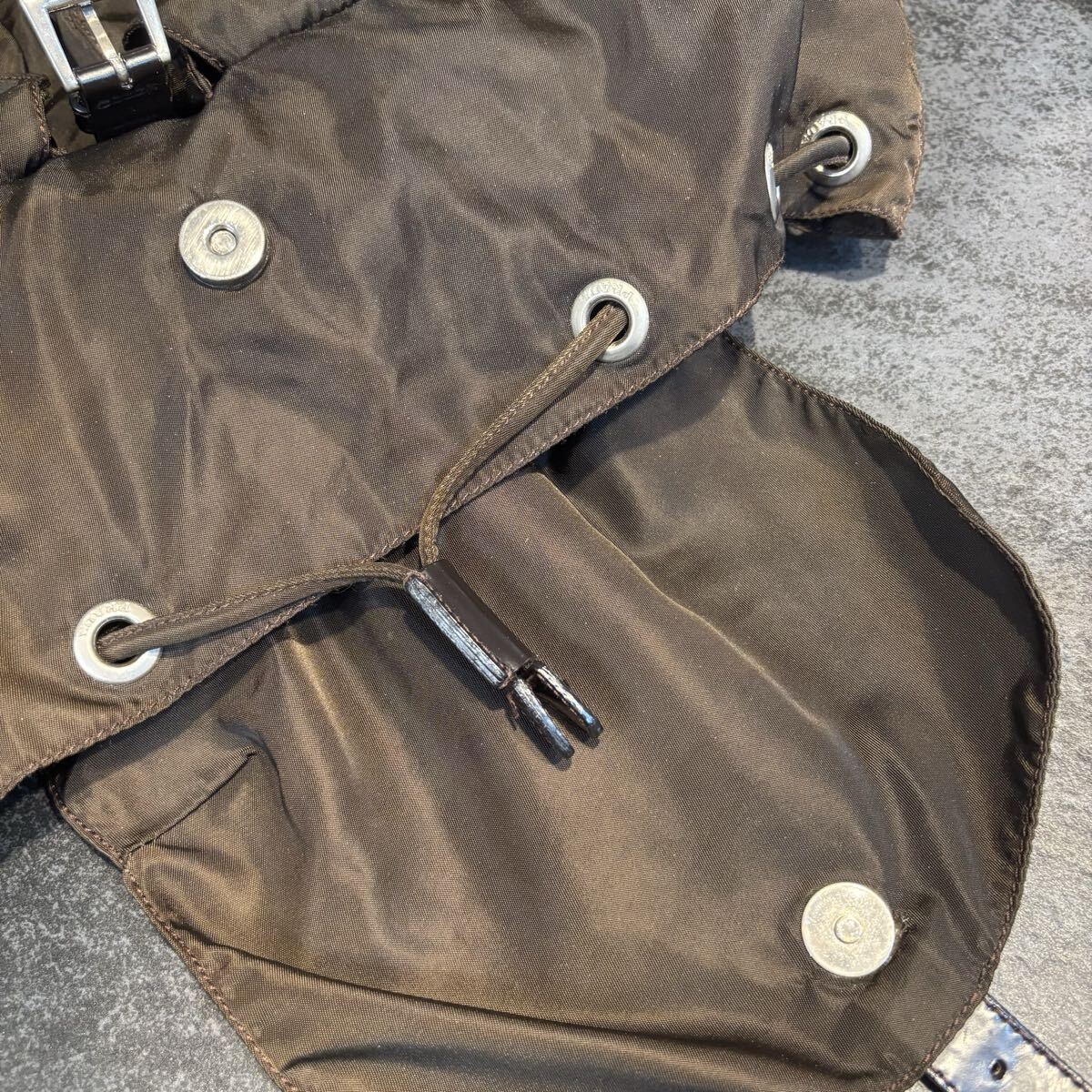 リュック ミニ バックパック ナイロン 巾着 茶色 ブラウン ロゴ プレート